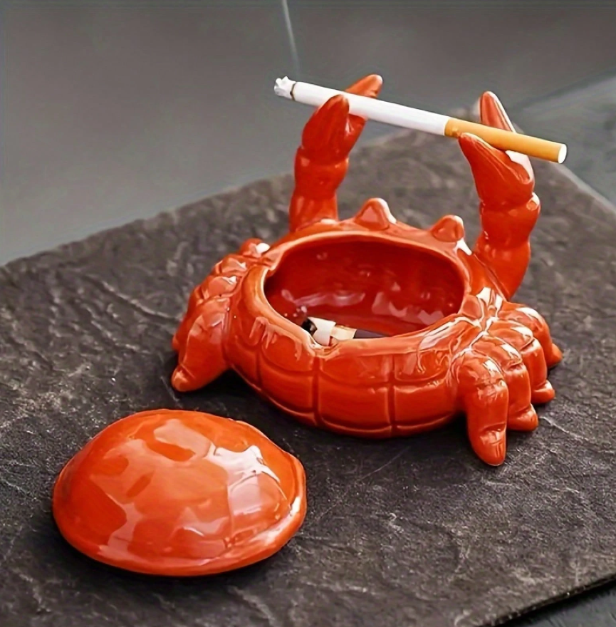 Ashtray with Lid, Windproof Tabletop Ceramic Cigarette Ash Tray