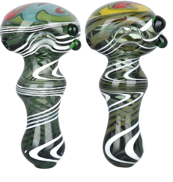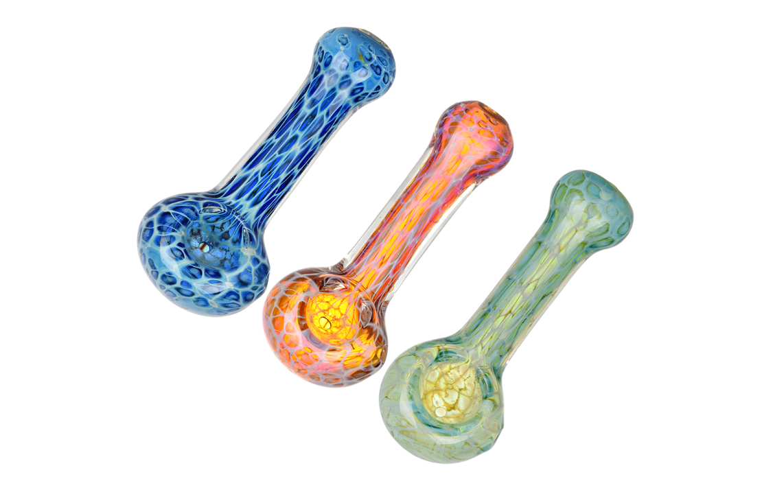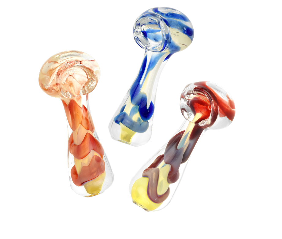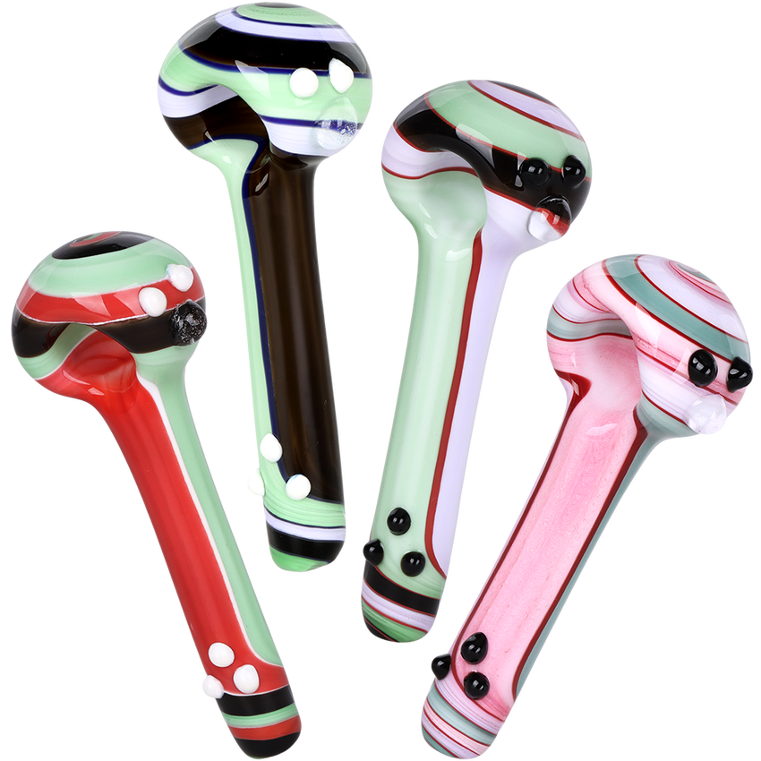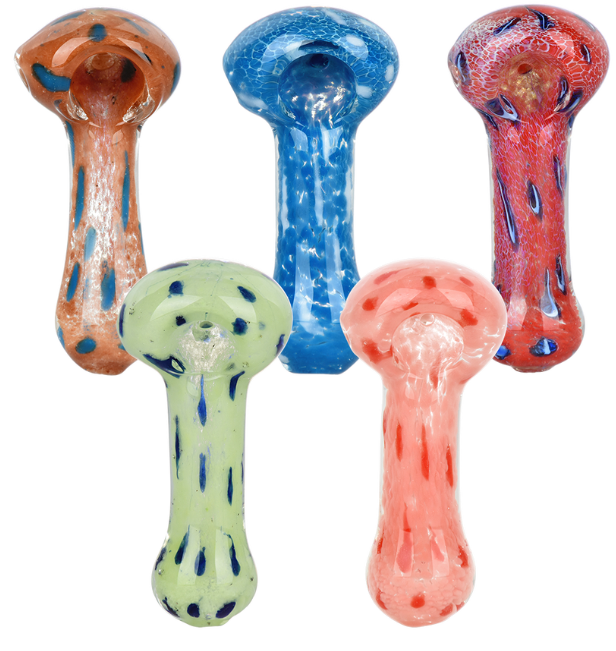 Stripe & Frit Glass Spoon Pipes | 3.5" to 4" | Assorted Styles & Colors