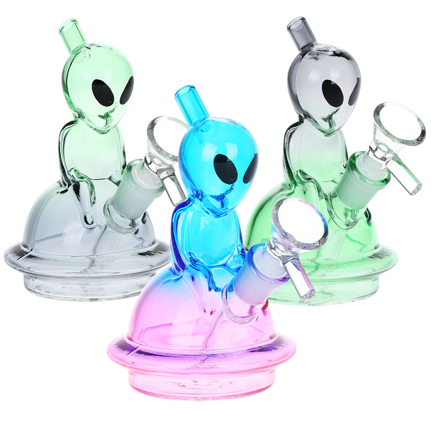Alien UFO Ombre Mini Glass Water Pipe | 5" | 14mm F | Colors Vary