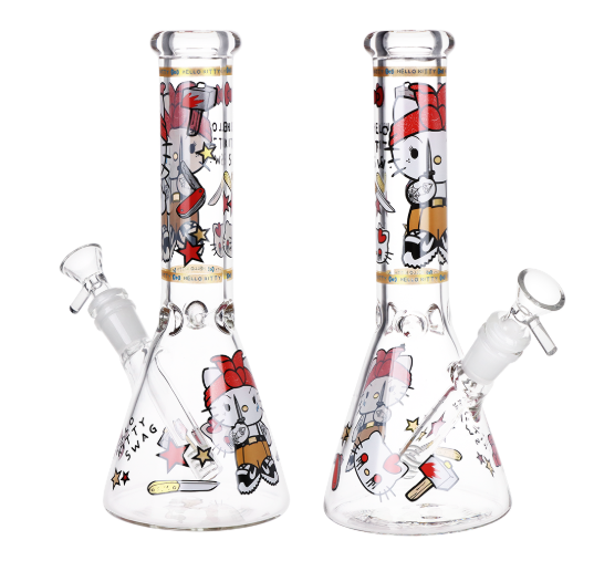 Wassup Kitty Beaker Glass Water Pipe 8" 14mm F (W)