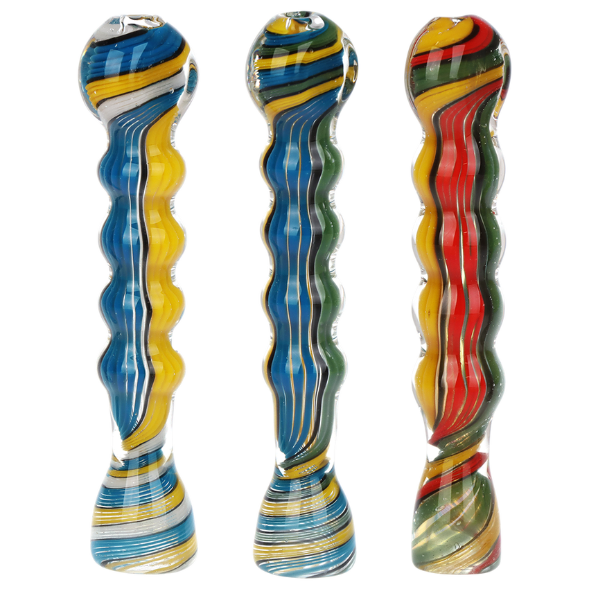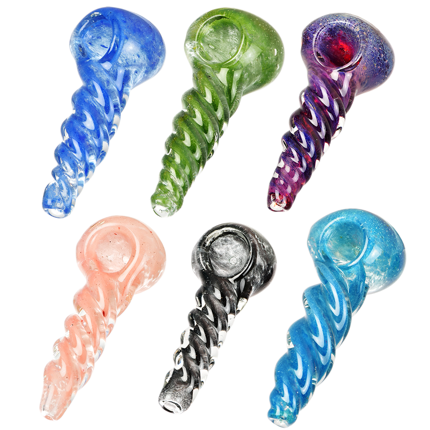 Small Twisted Frit Glass Pipe - 3" - Colors Vary