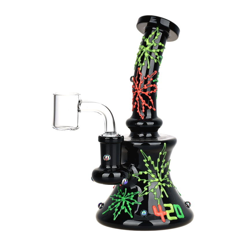 420 Neon Hemp Leaf Glow in the Dark Dab Rig | 6.5" | 14mm F