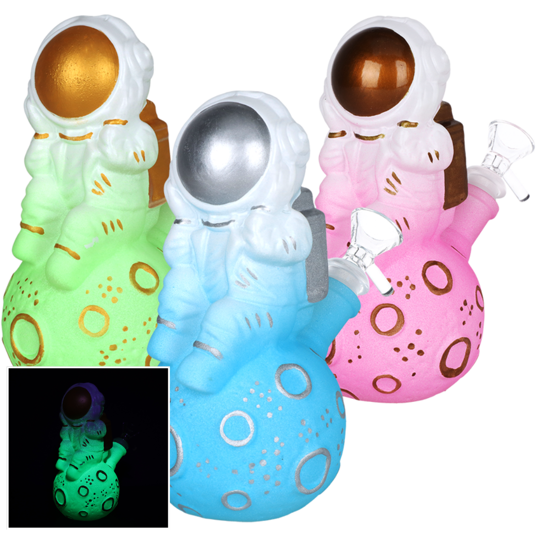 UFO Glass & Silicone Glow In The Dark Water Pipe | 7" | 14mm F | Colors Vary