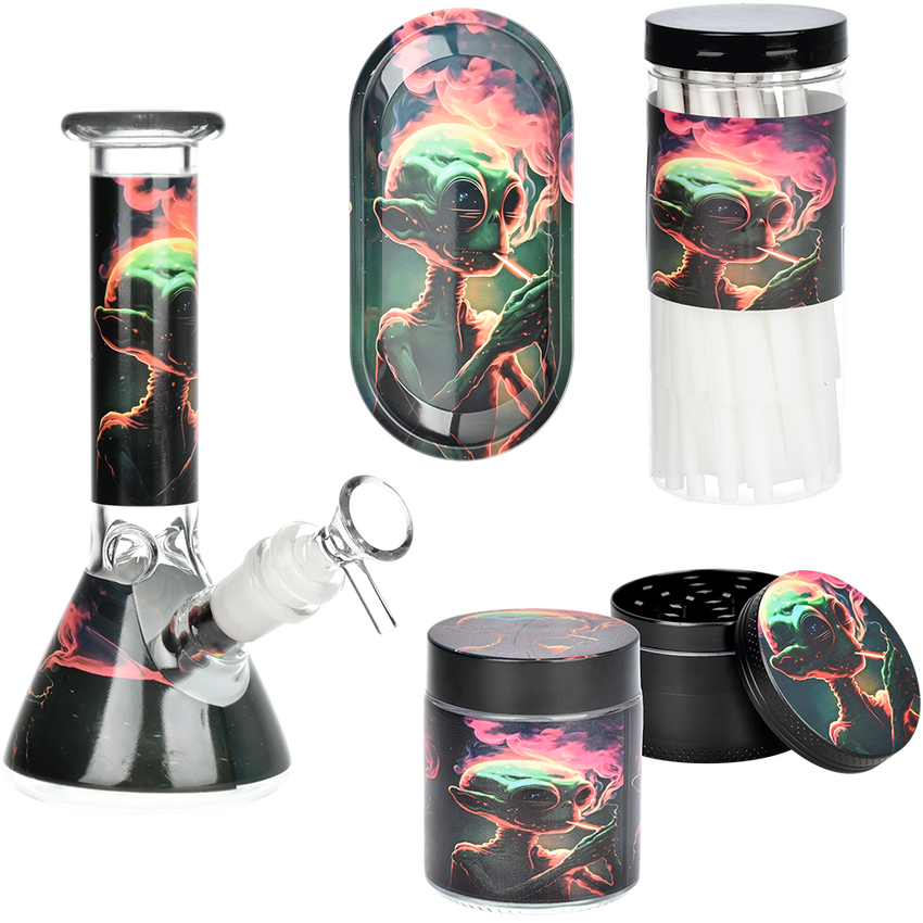Alien Glass Beaker Water Pipe Smoking Set | 7.75" | 14mm F
