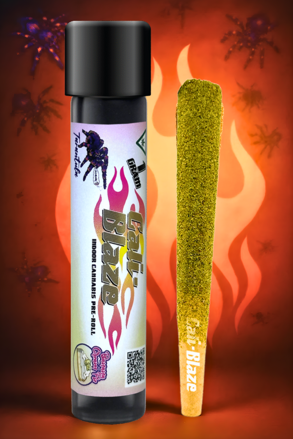 Cali-Blaze Tarantula | Banana Cream Pie | Kief Coated & Liquid Diamond Infused Preroll - 1g