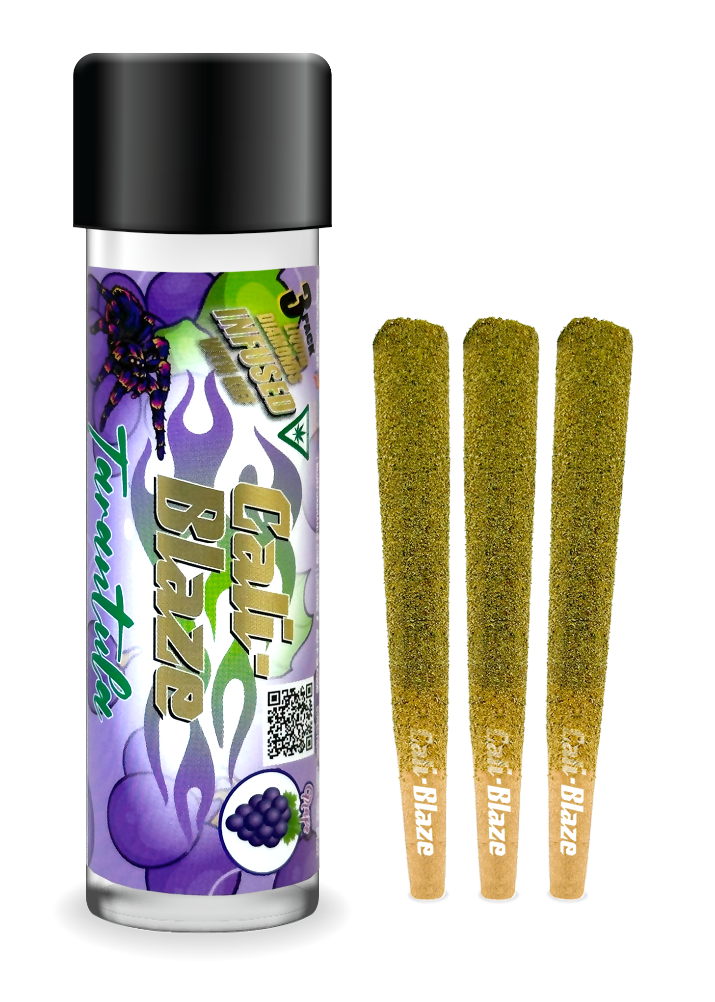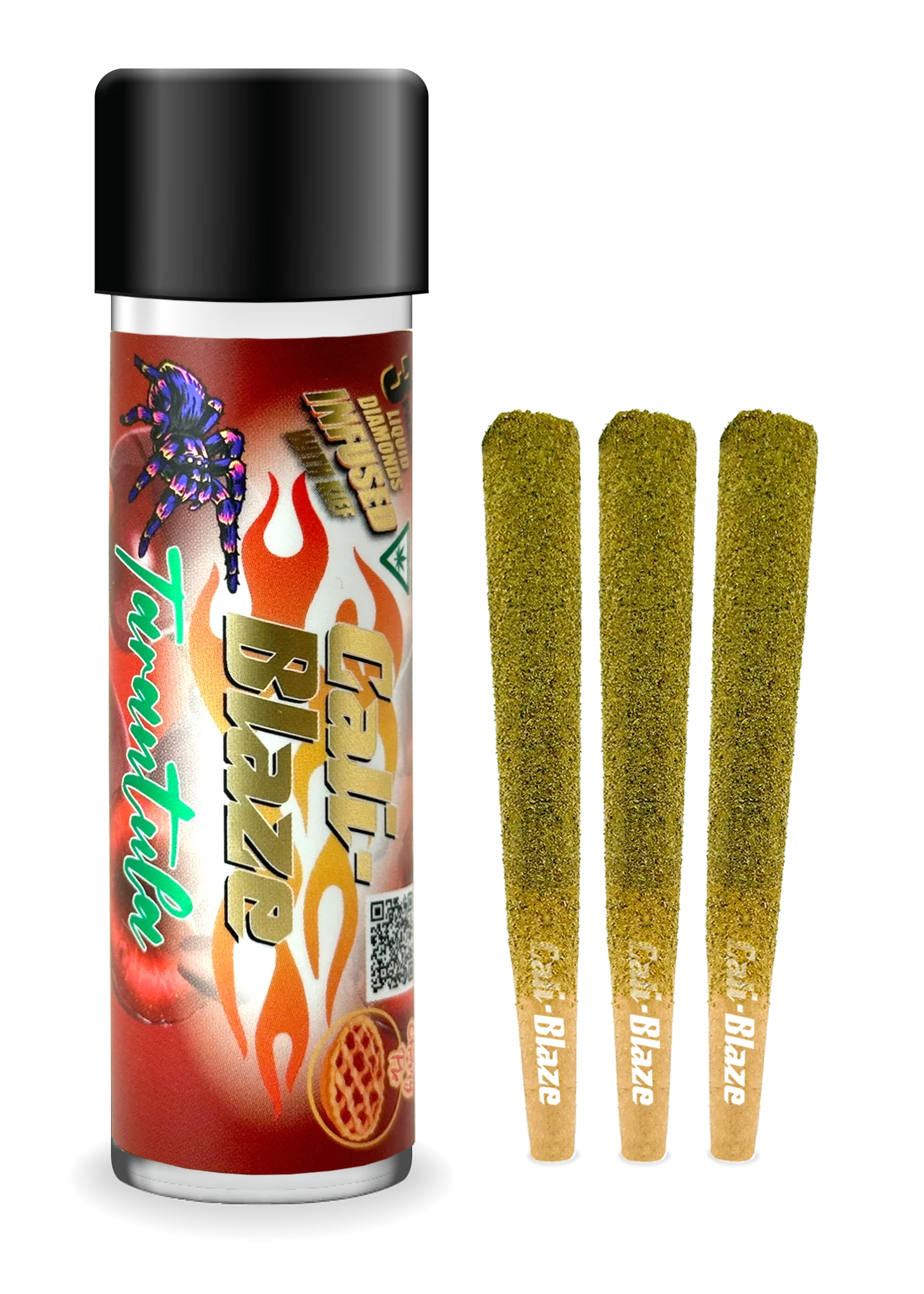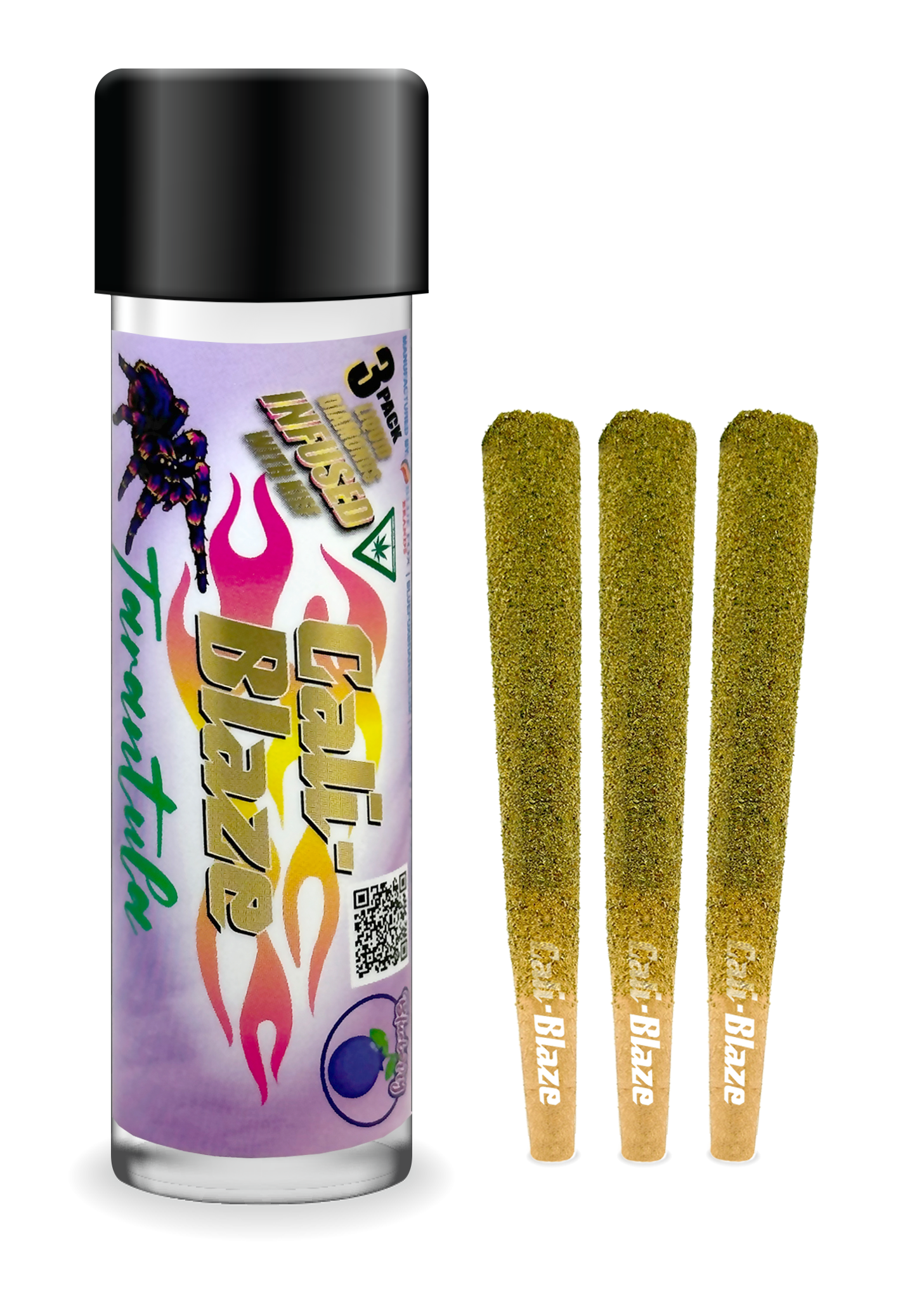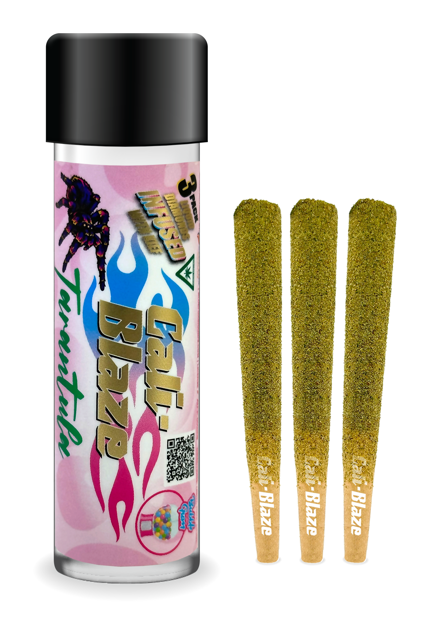 Cali-Blaze Tarantula | Bubble Gum | Kief Coated & Liquid Diamond Infused Preroll - 1g/3pk