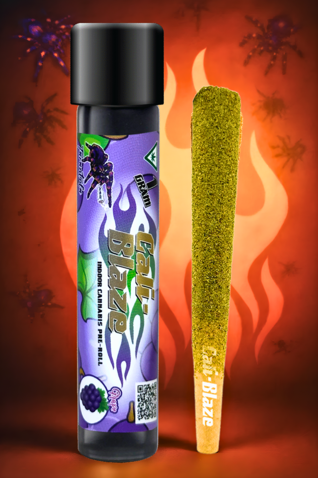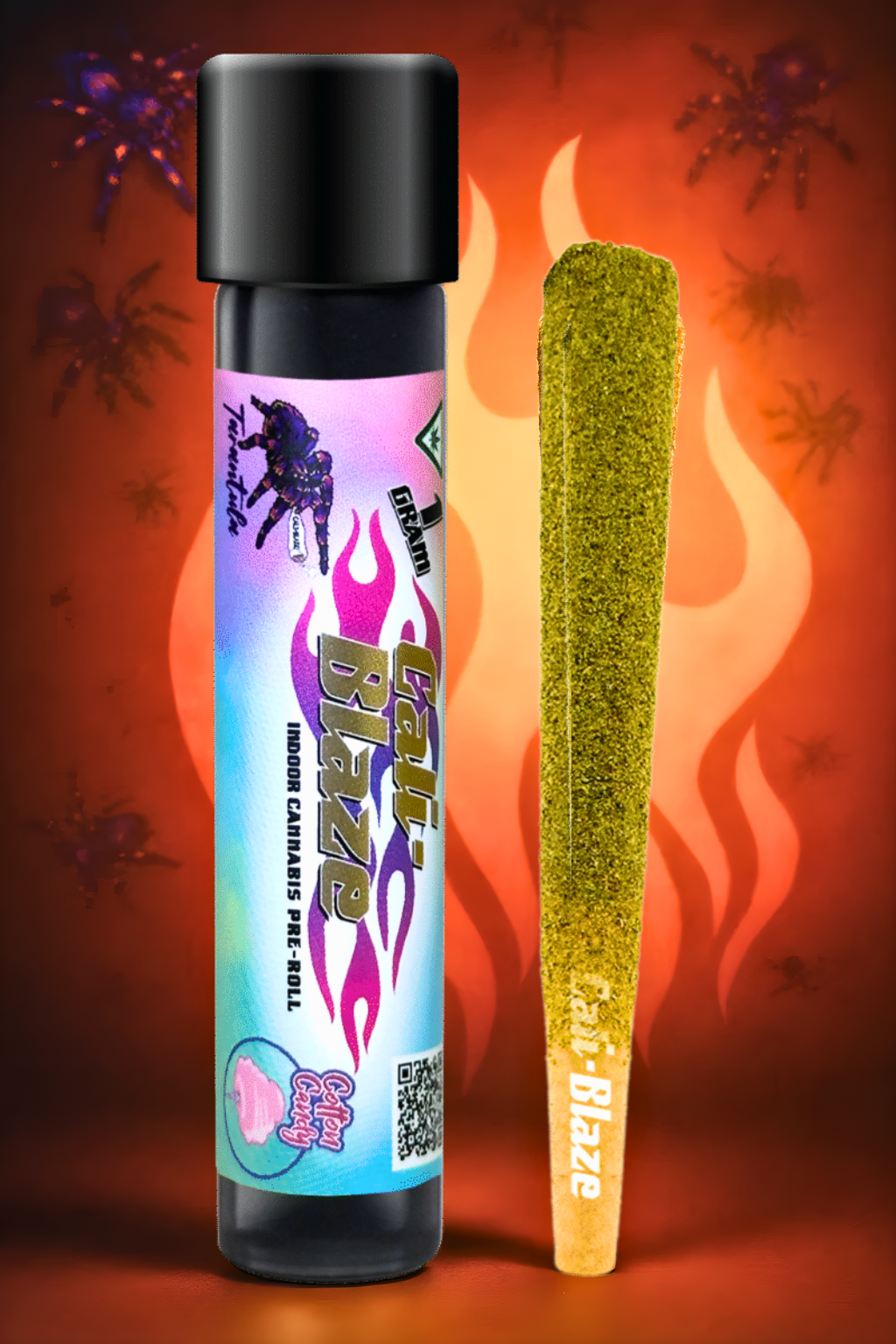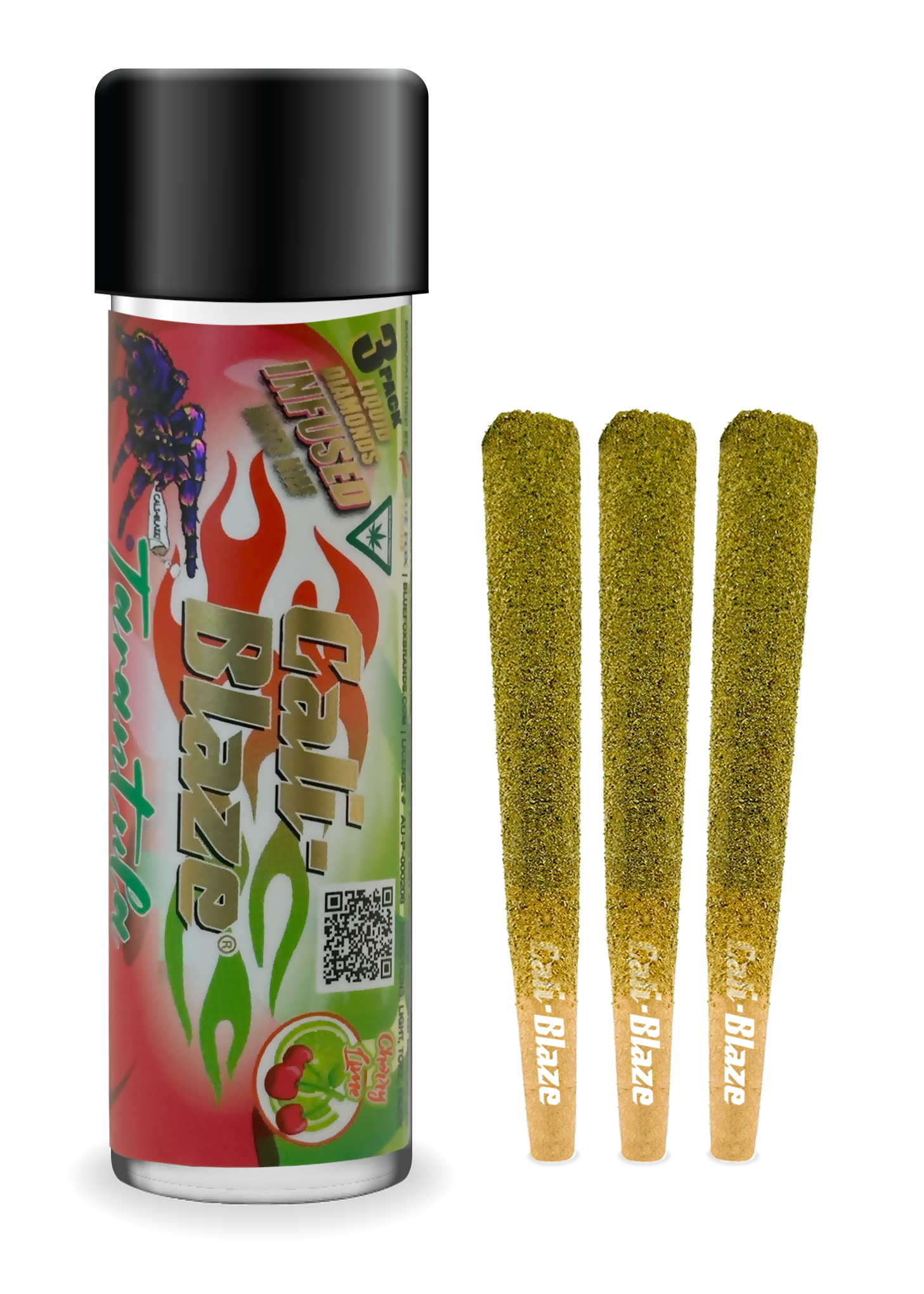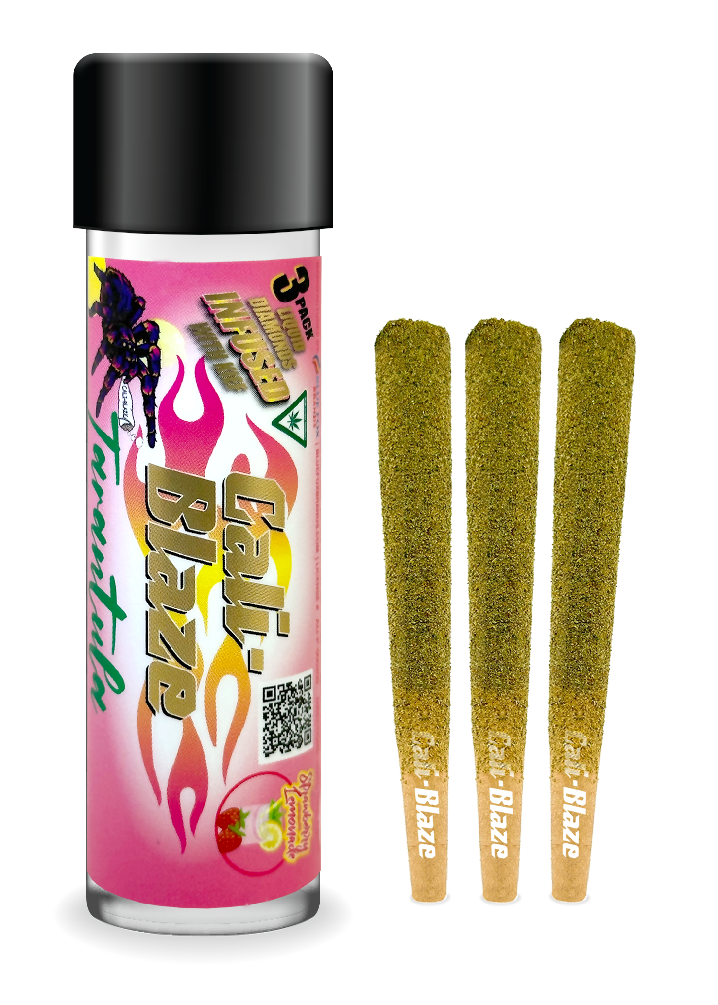 Cali-Blaze Tarantula | Bubble Gum | Kief Coated & Liquid Diamond Infused Preroll - 1g/3pk
