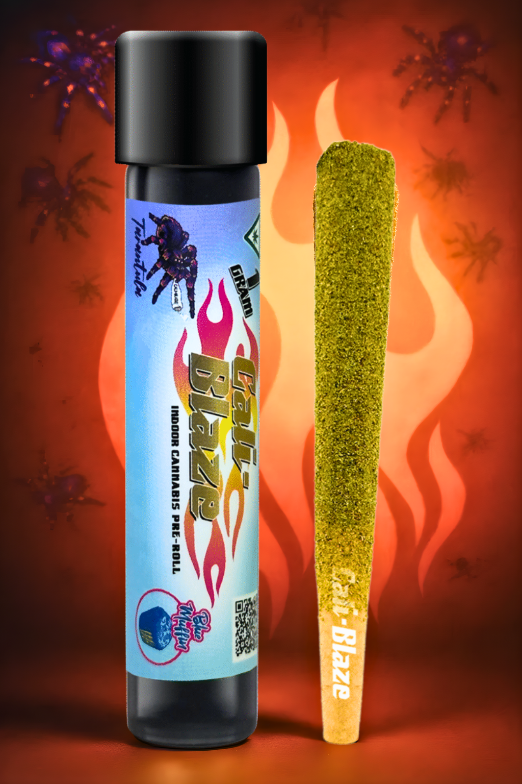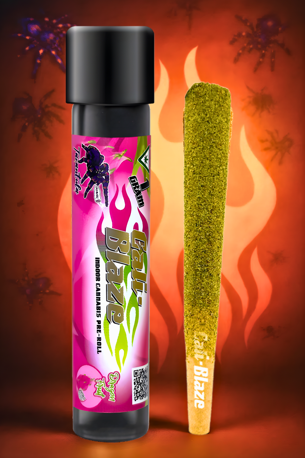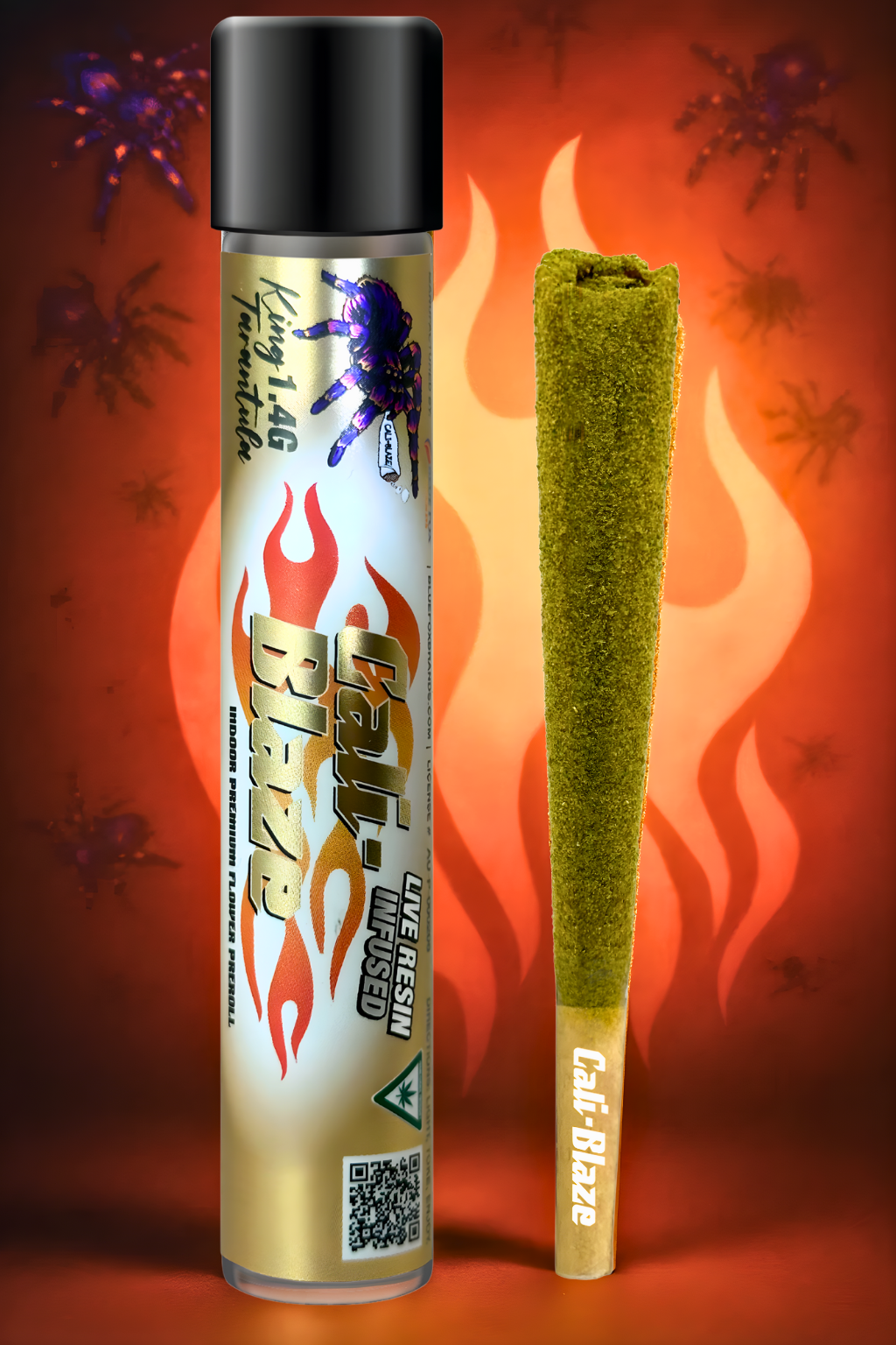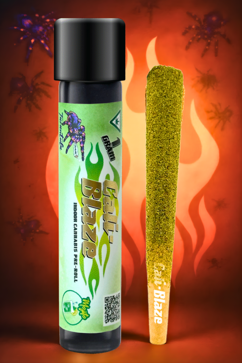 Cali-Blaze Tarantula | Bubble Gum | Kief Coated & Liquid Diamond Infused Preroll - 1g/3pk