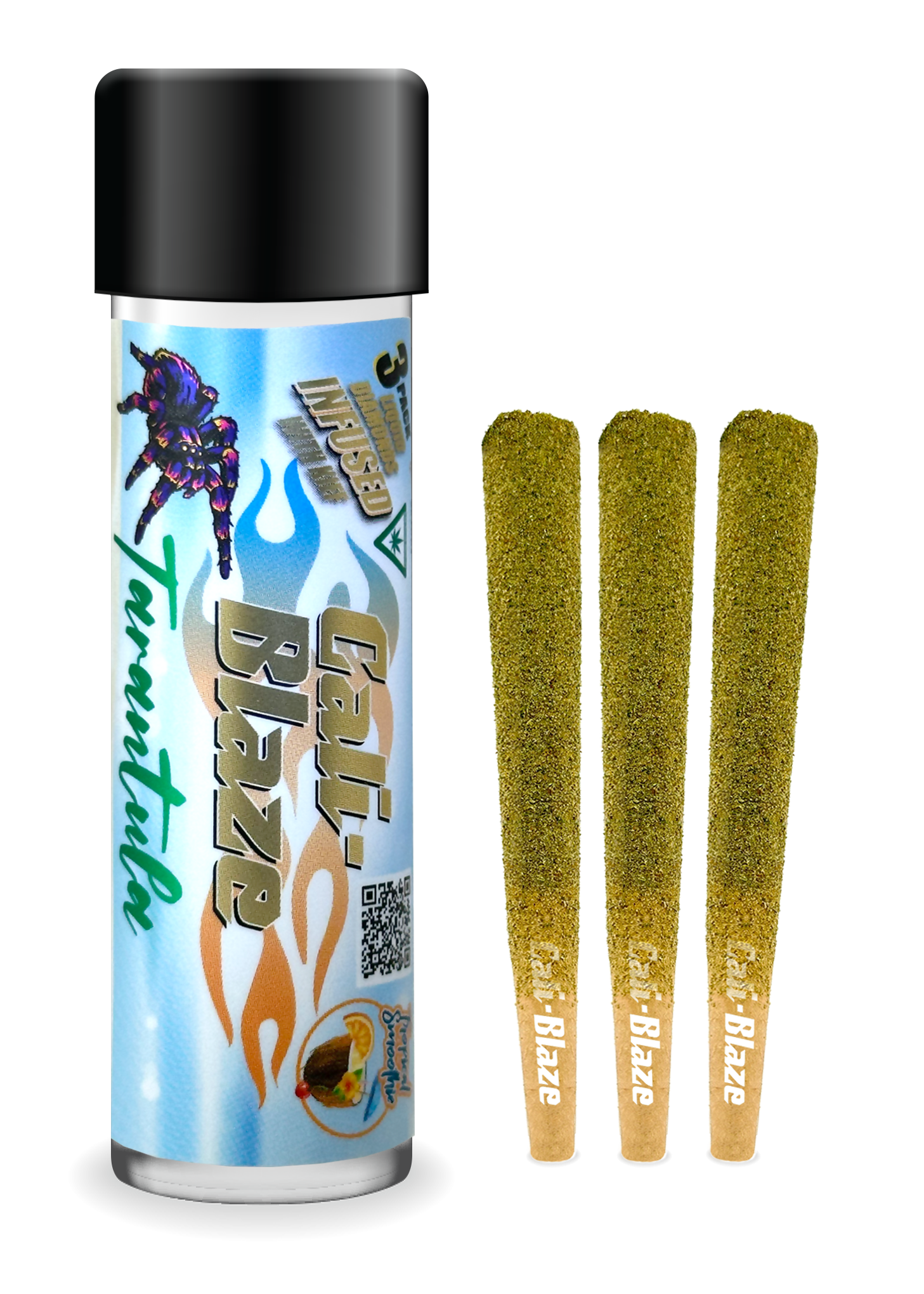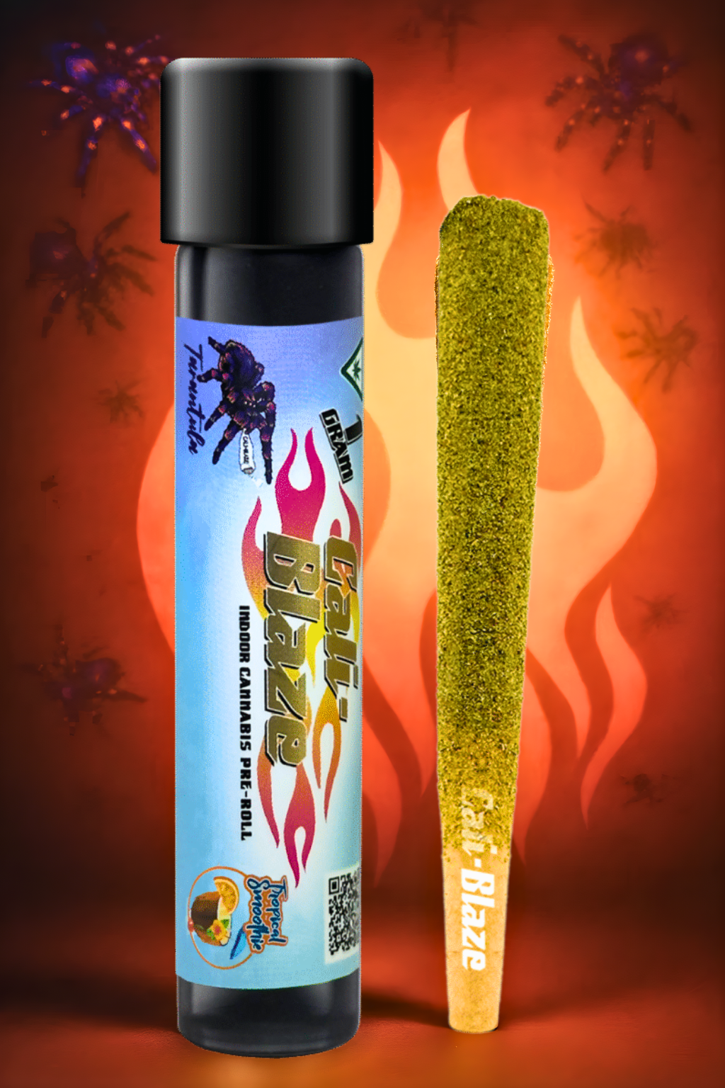 Cali-Blaze Tarantula | Tropical Smoothie | Kief Coated & Liquid Diamond Infused Preroll - 1g