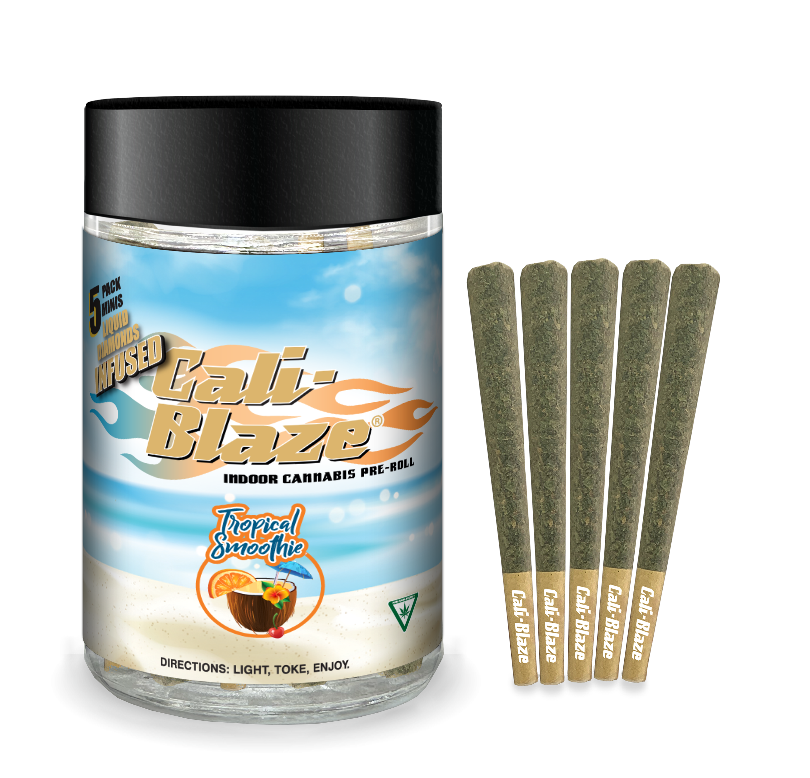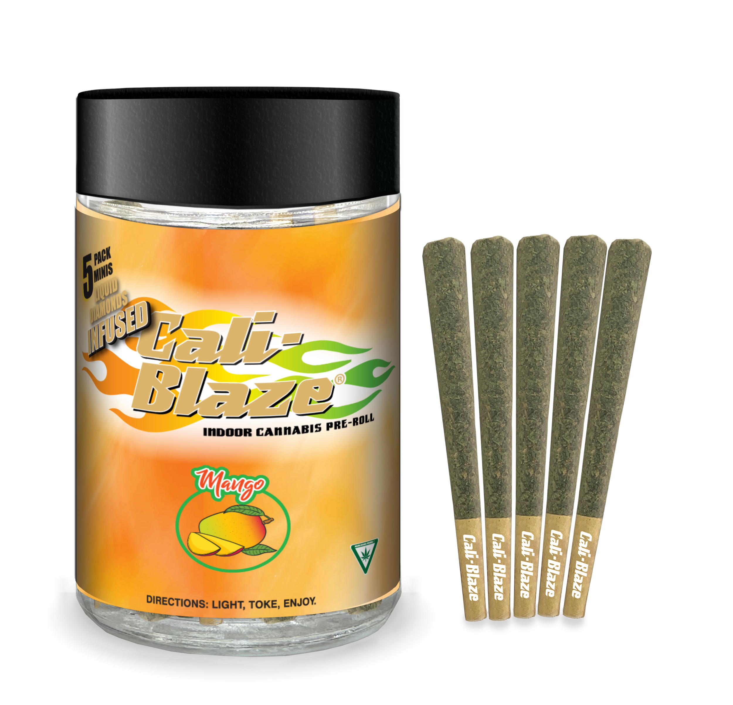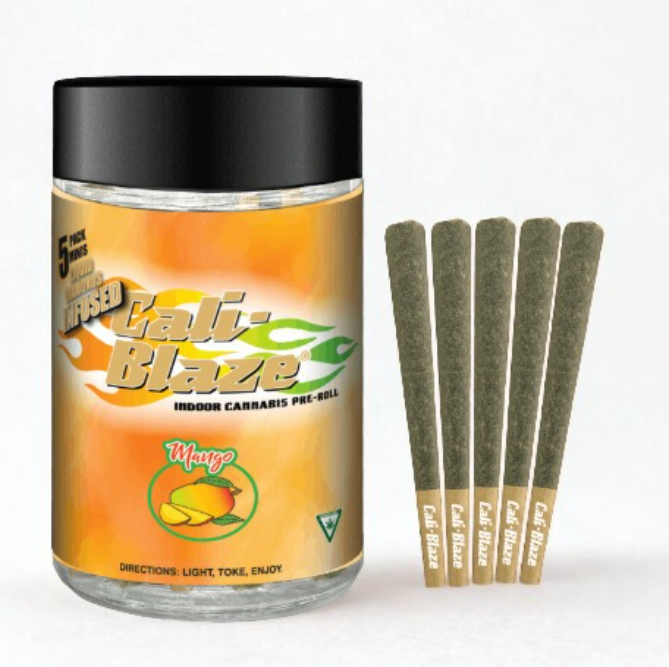 Cali Blaze | Mango | Diamond Infused Mini Pre-Roll Joint Multi Pack 0.7g x 5 | Hybrid