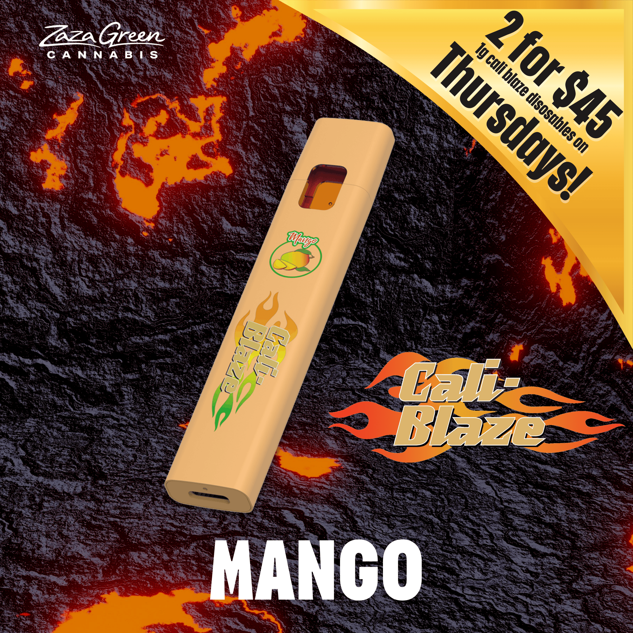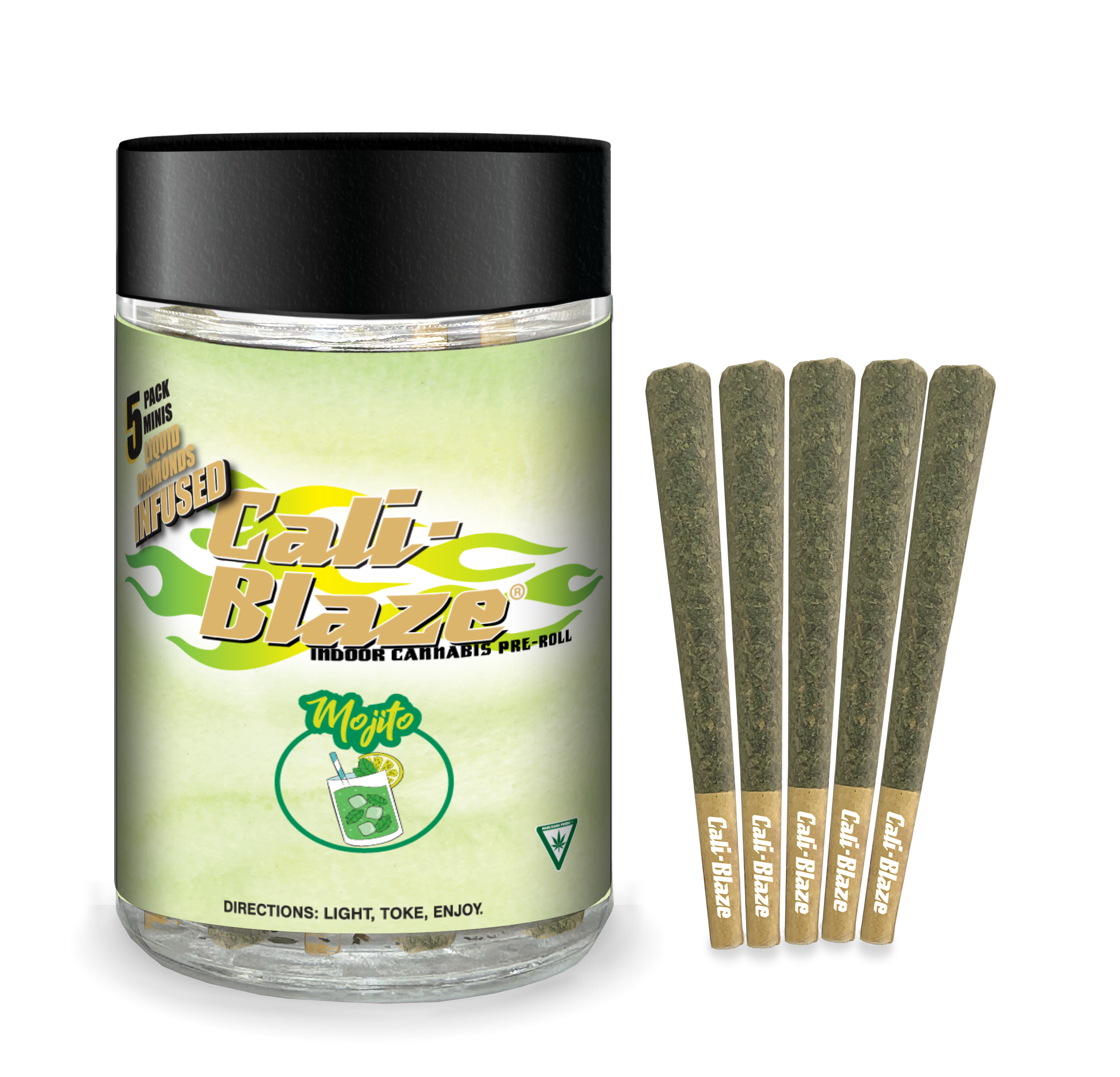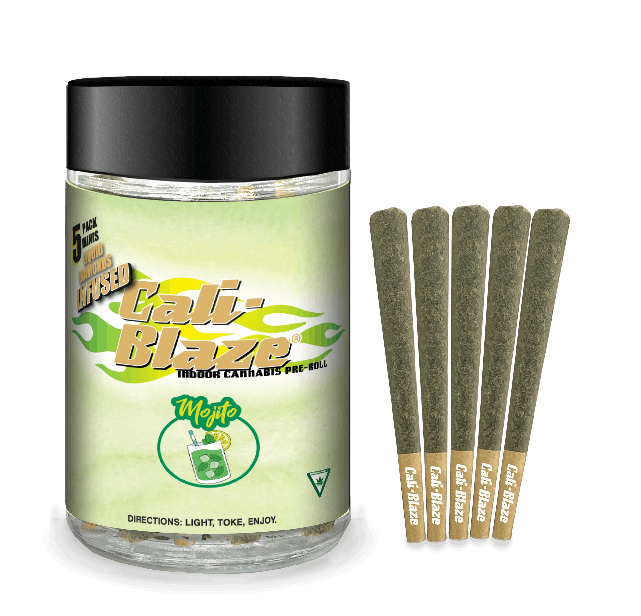 Cali Blaze | Mango | Diamond Infused Mini Pre-Roll Joint Multi Pack 0.7g x 5 | Hybrid