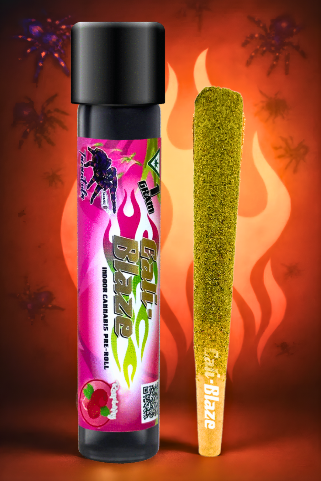Cali-Blaze Tarantula | Raspberry | Kief Coated & Liquid Diamonds Infused Preroll - 1g