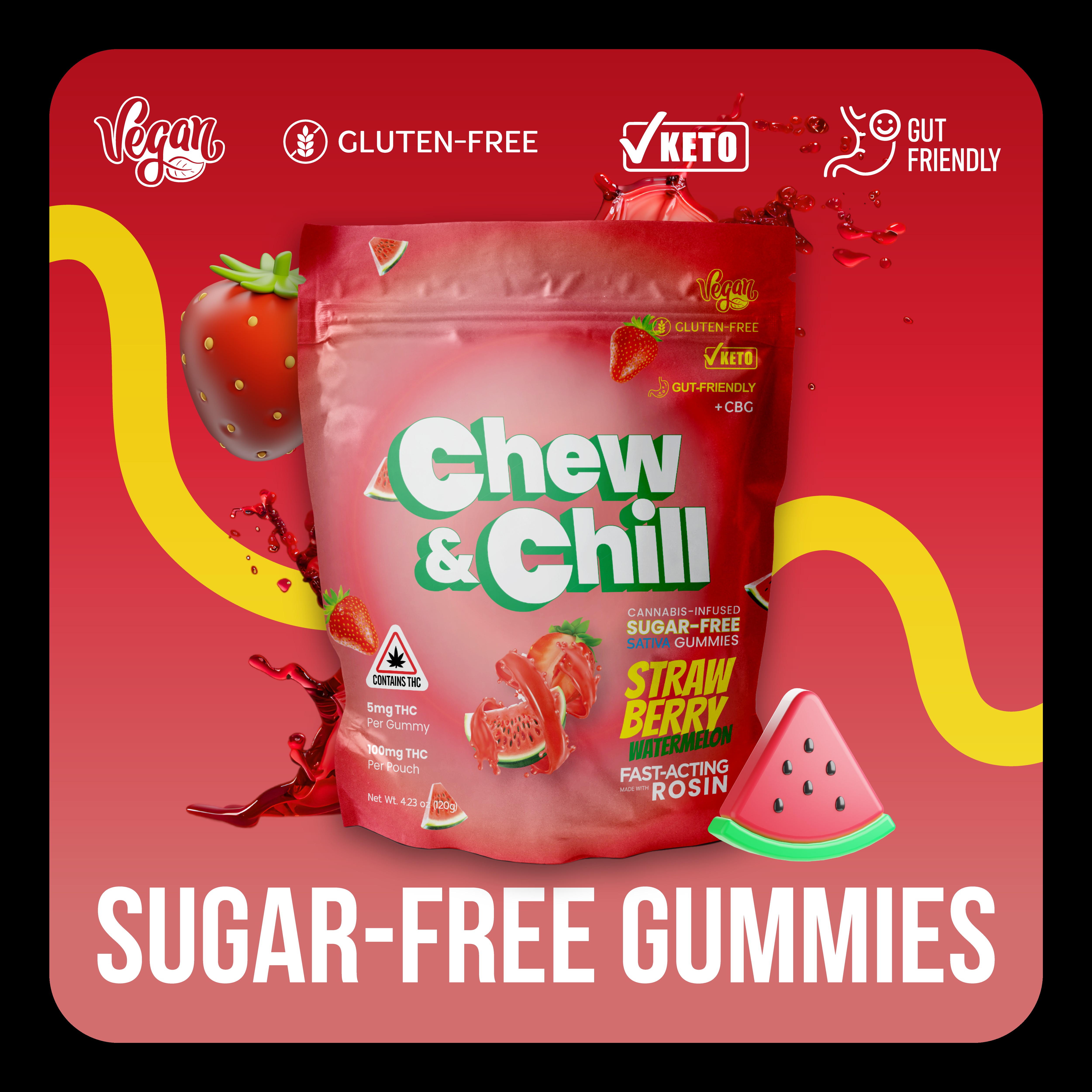 Strawberry Watermelon THC:CBG 3:1 I FAST Sugar-free Rosin Gummies 100mg - Levitate