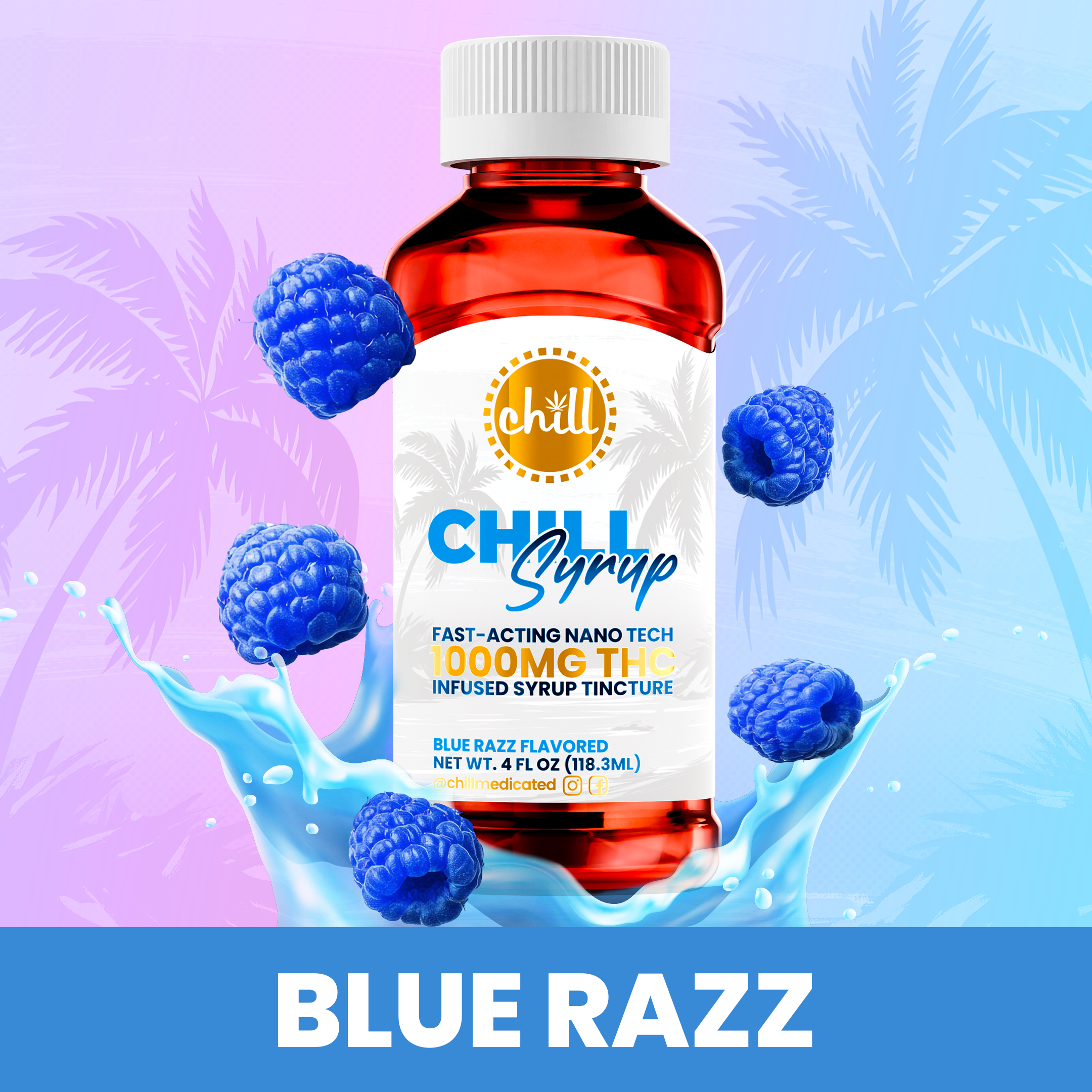 Chill Medicated Fast-acting Chill Syrup Tincture Zero Sugar Blue Razz | 500mg