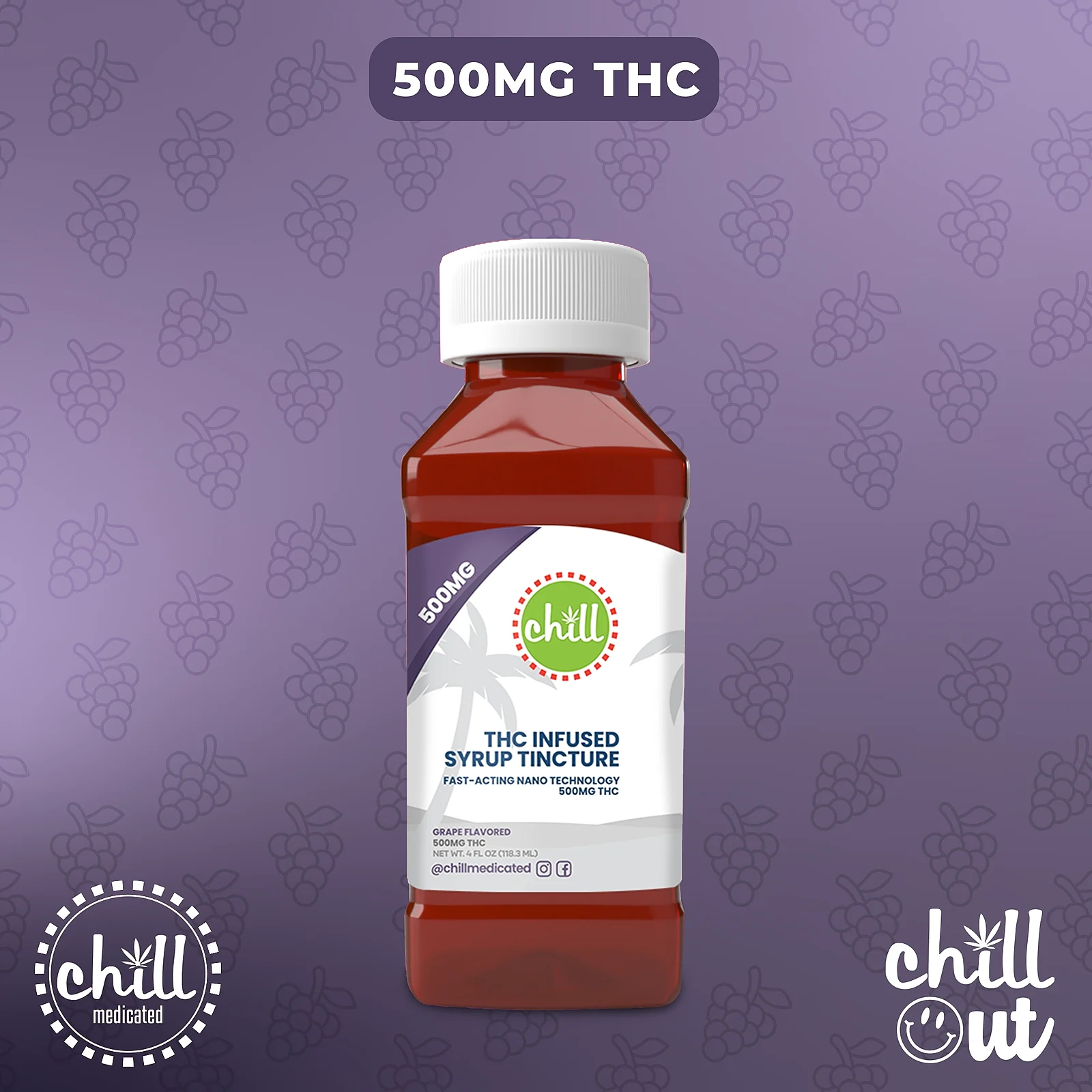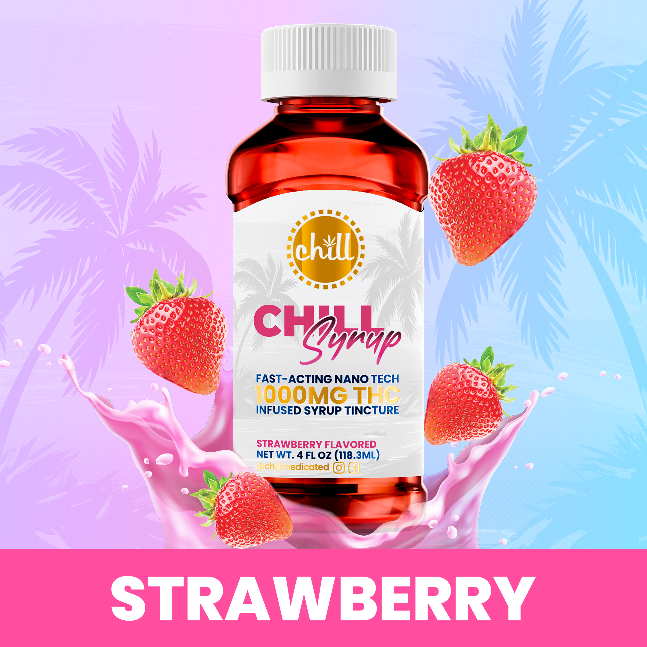 Chill Medicated Fast-acting Chill Syrup Tincture Zero Sugar Strawberry | 500mg