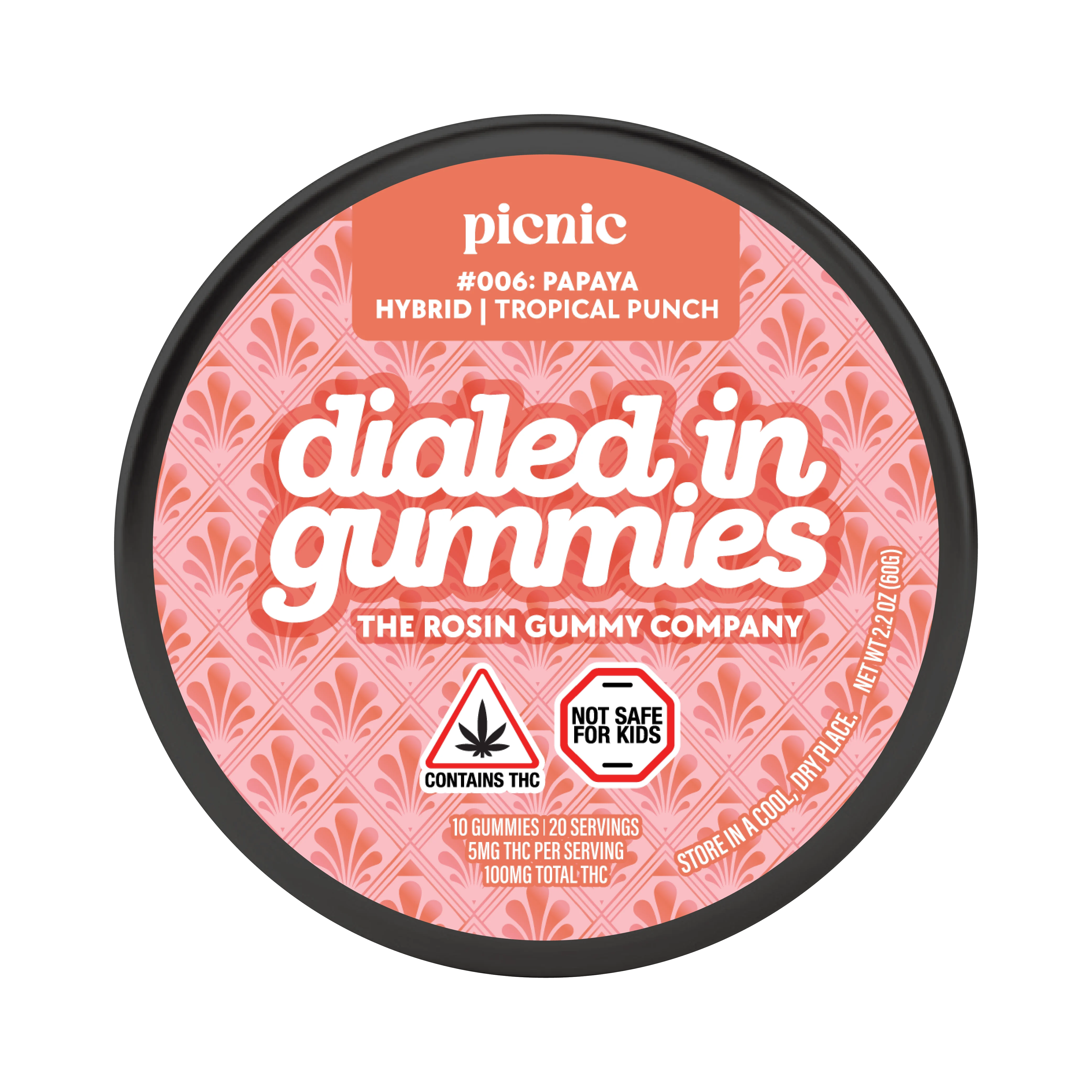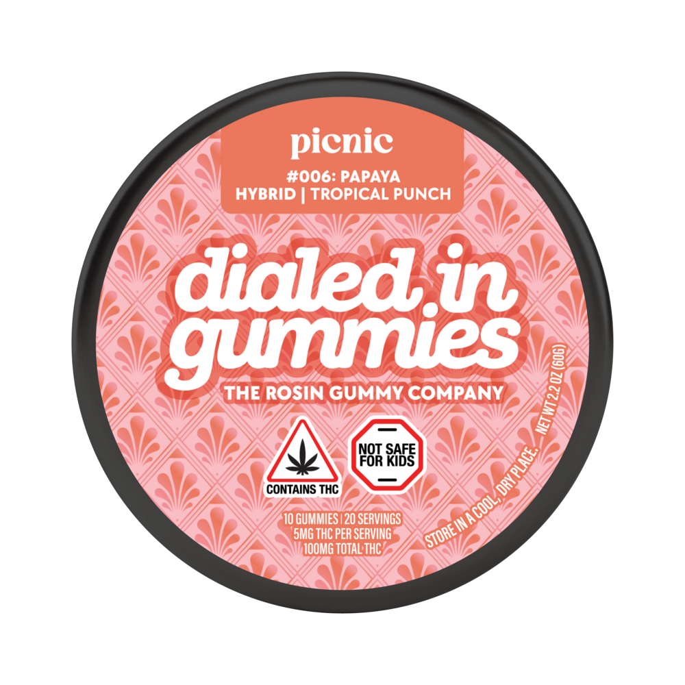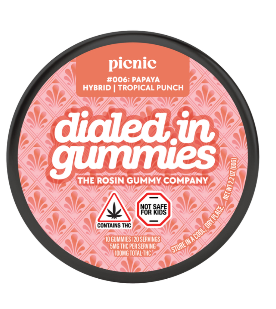 Dialed In | LTO | Rosin Gummies | Hybrid | Tropical Punch x Picnic | 100mg 20pk