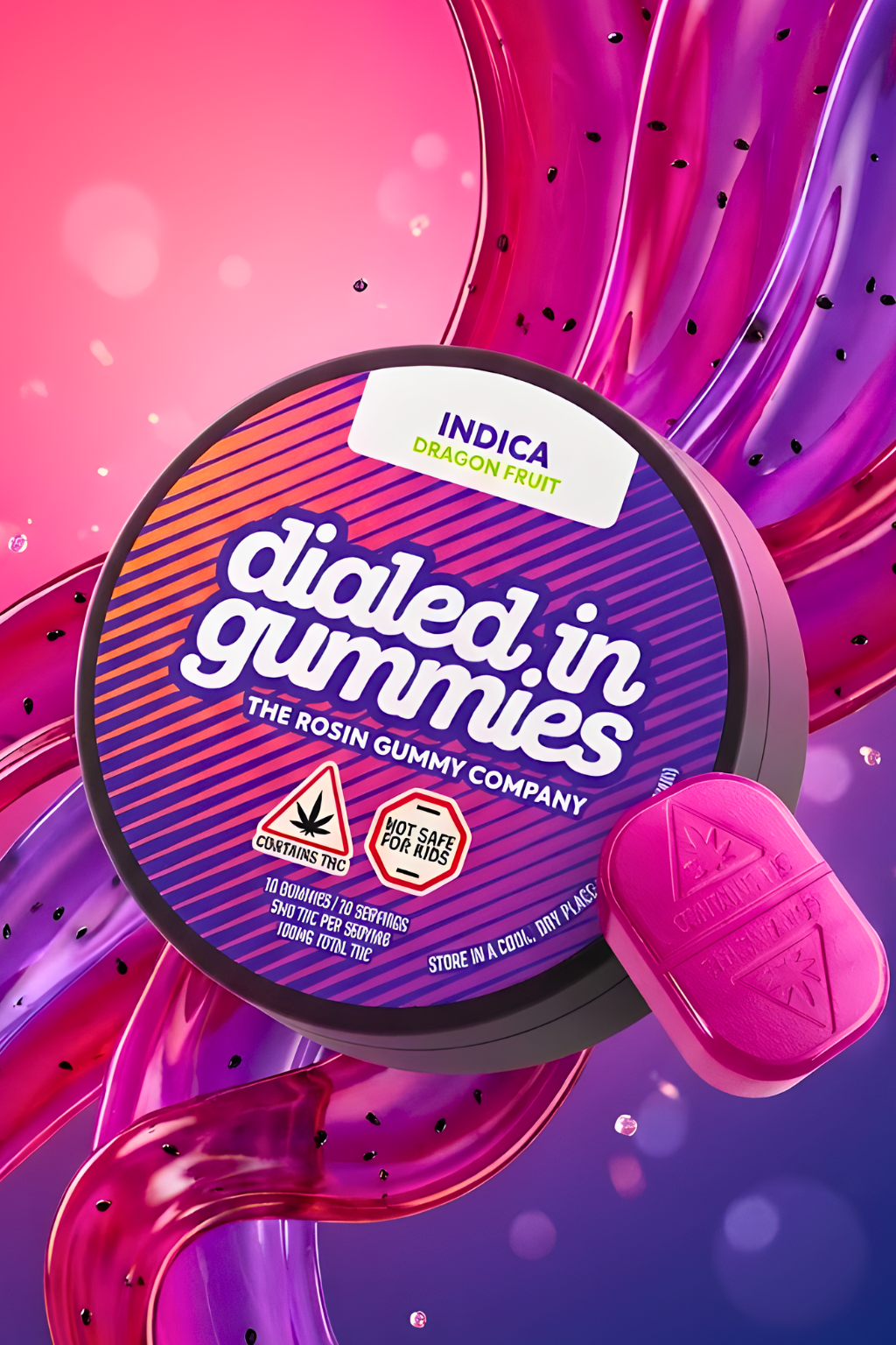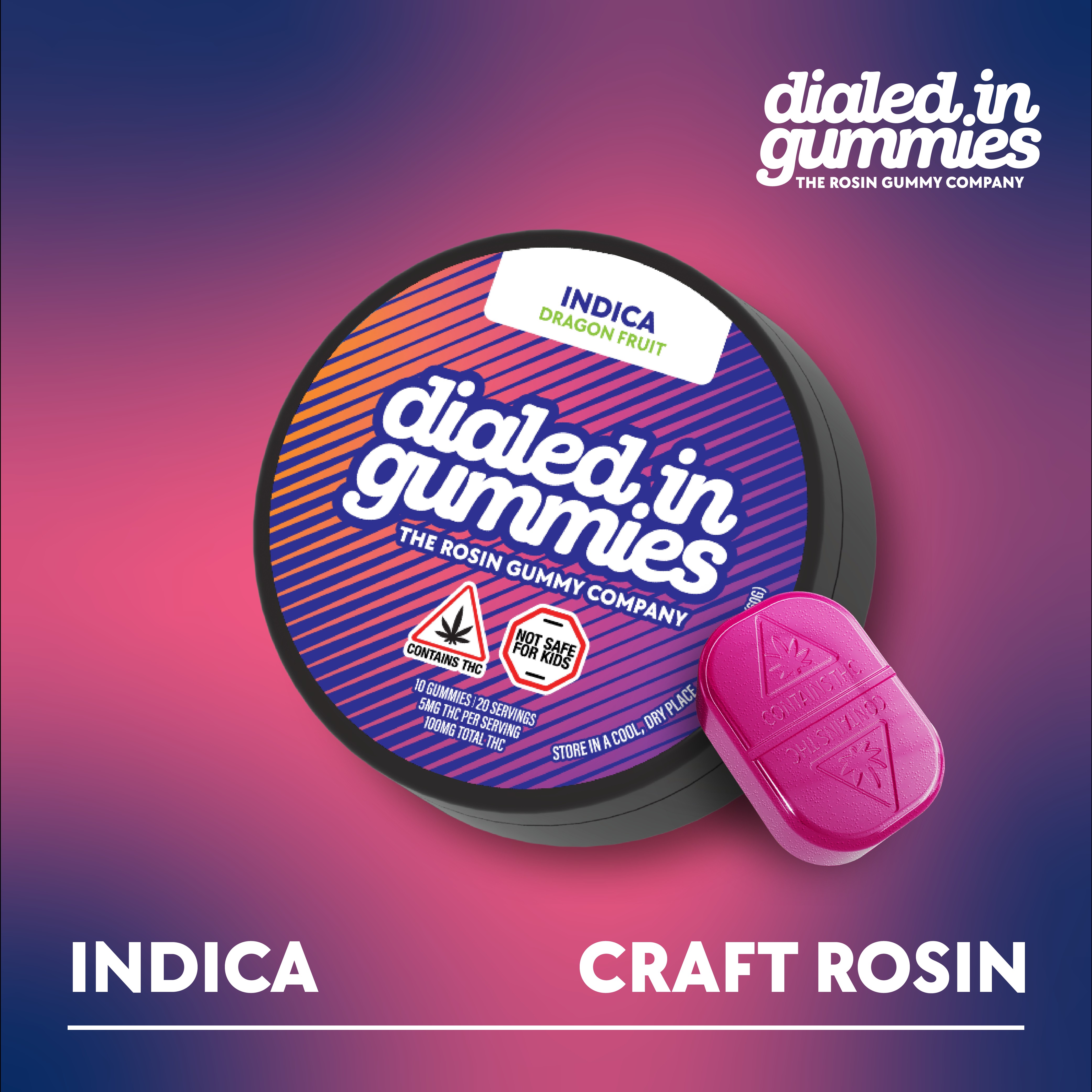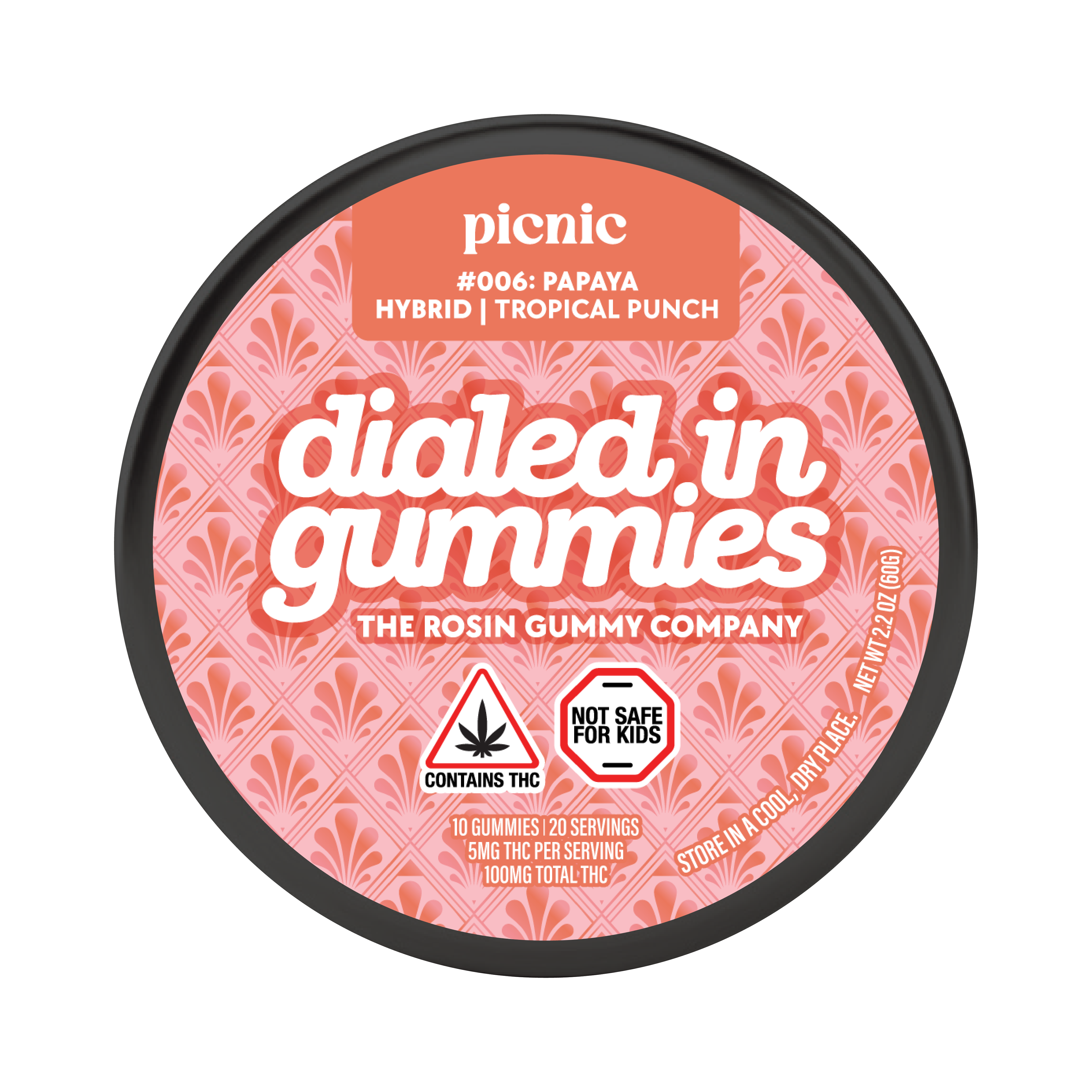 Dialed In | LTO | Rosin Gummies | Hybrid | Tropical Punch x Picnic | 100mg 20pk