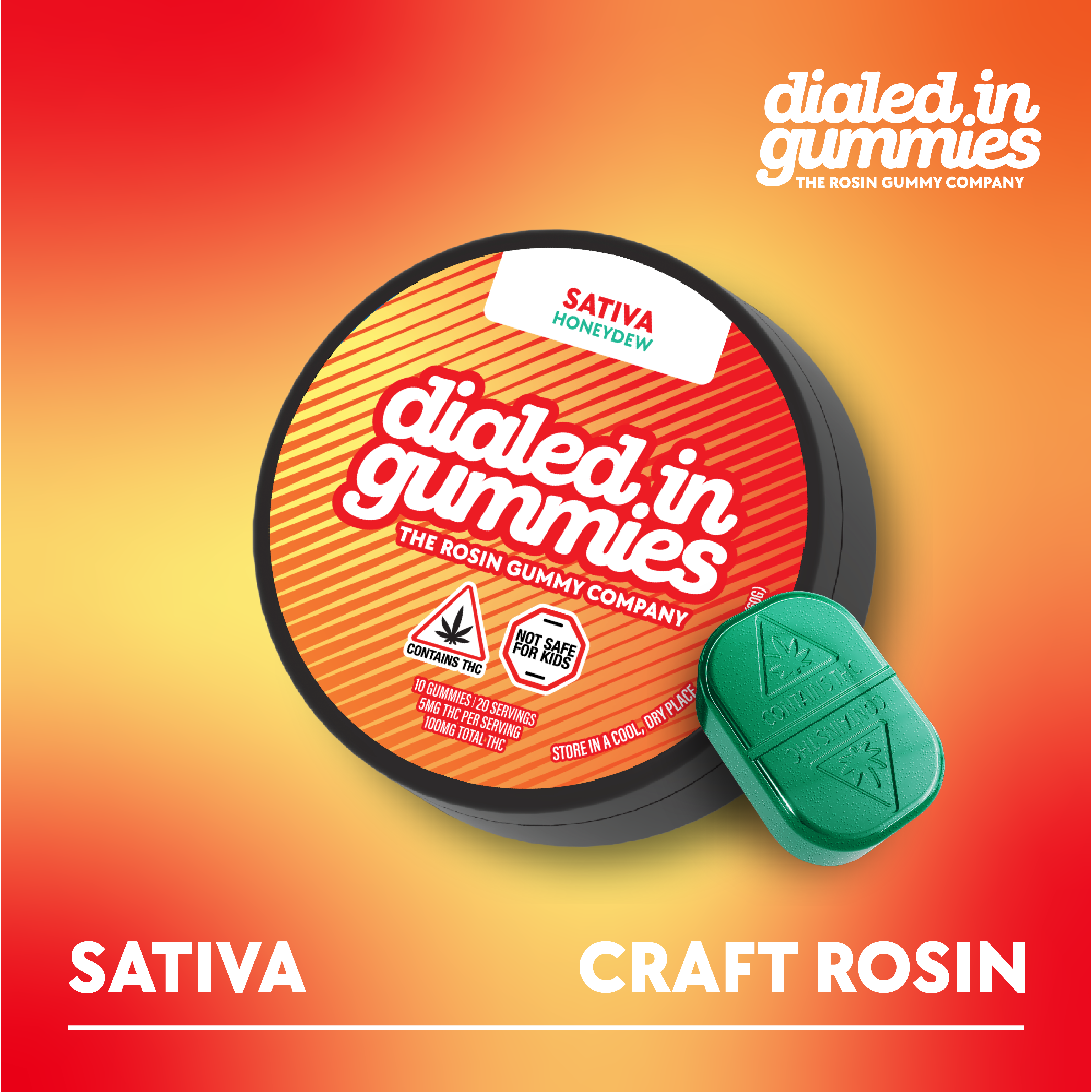 Dialed In | LTO | Bulk Rosin Gummies | Sativa | Papaya x Mix & Mingle | 100mg 20pk