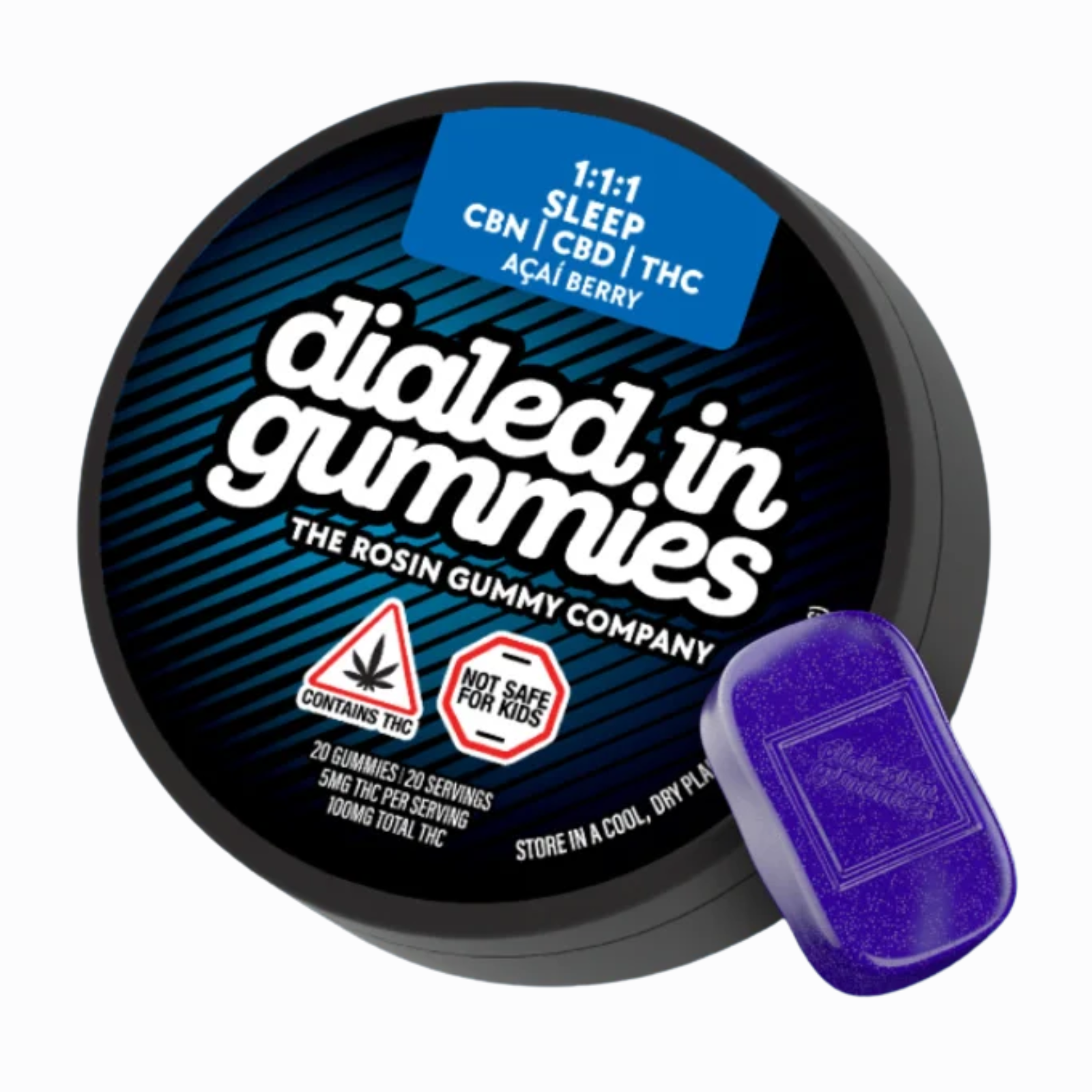 Dialed In | Innovation | Rosin Gummies | Sleep | Acai Berry | 1:1:1 CBN:CBD:THC | 100mg 20pk