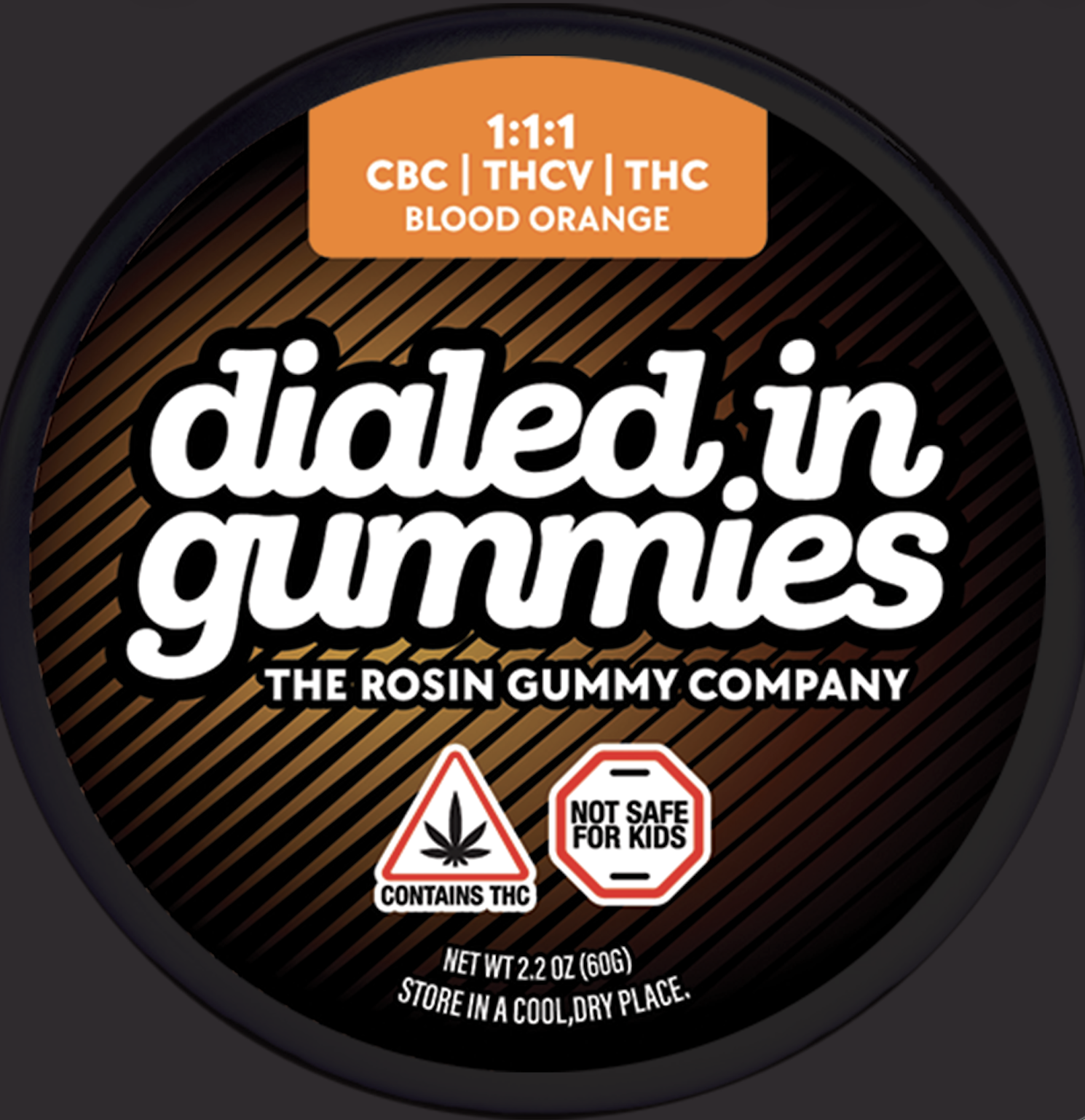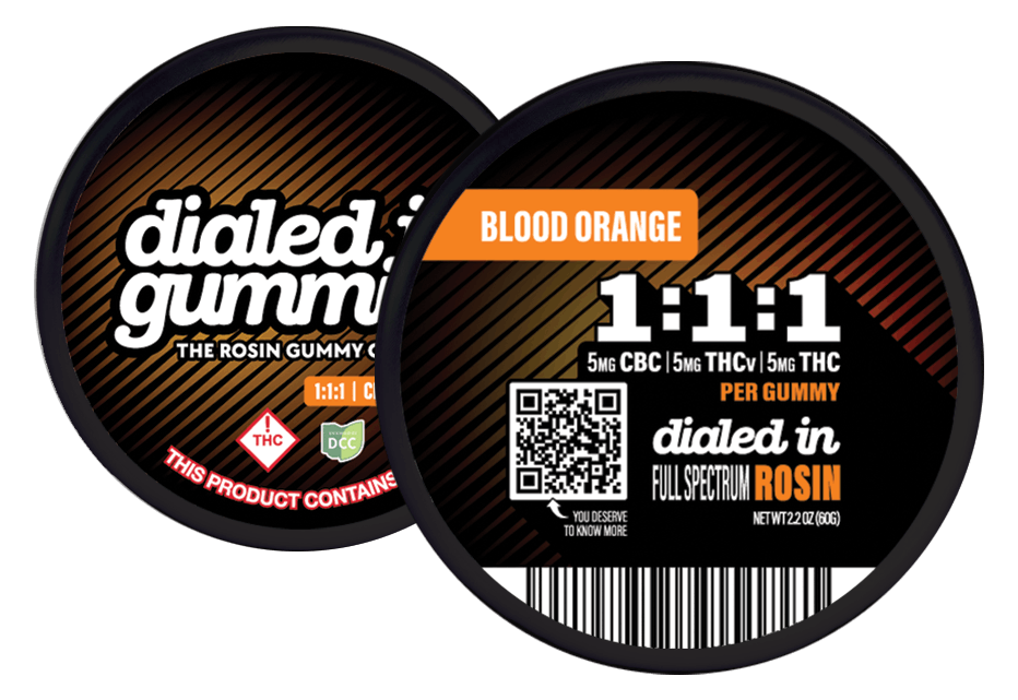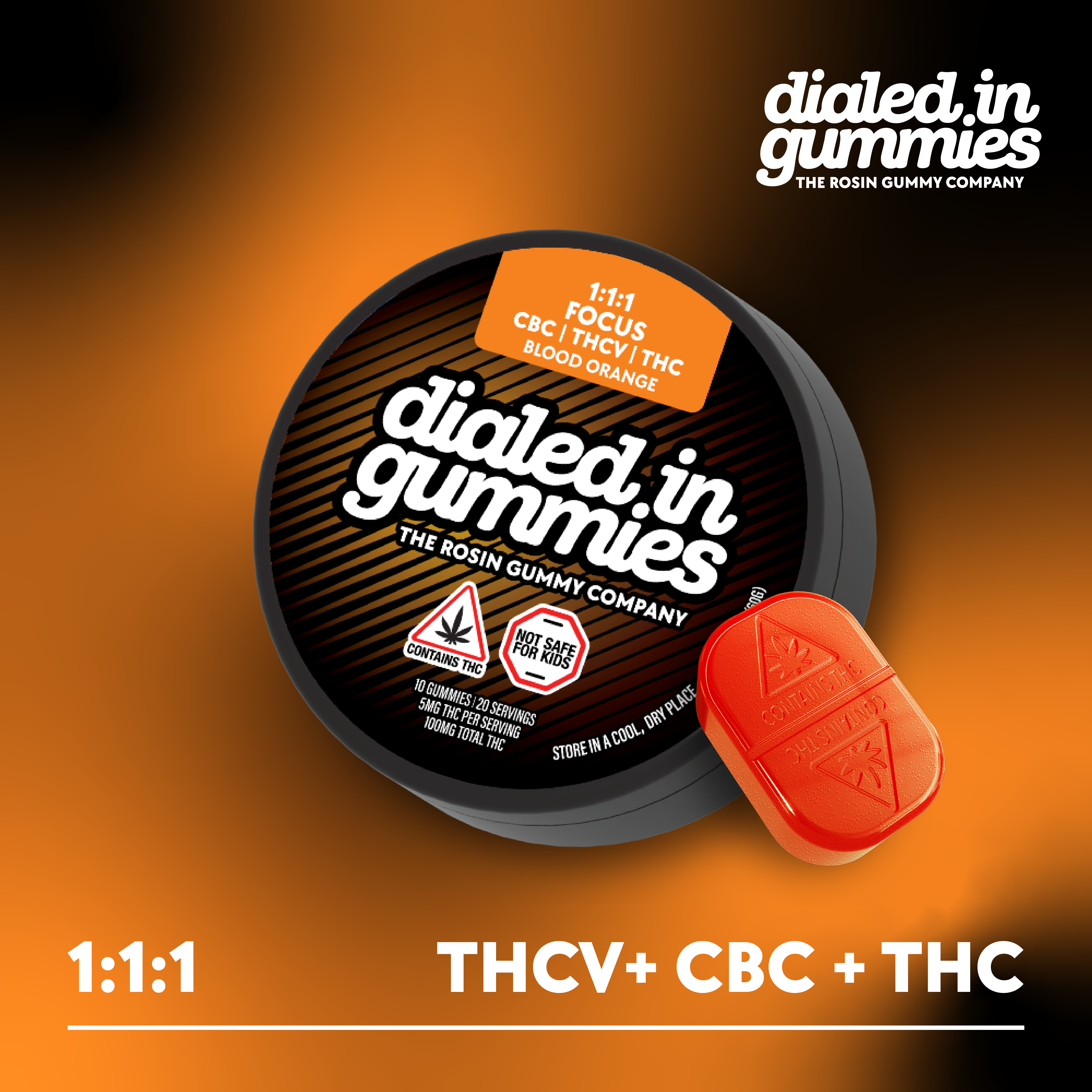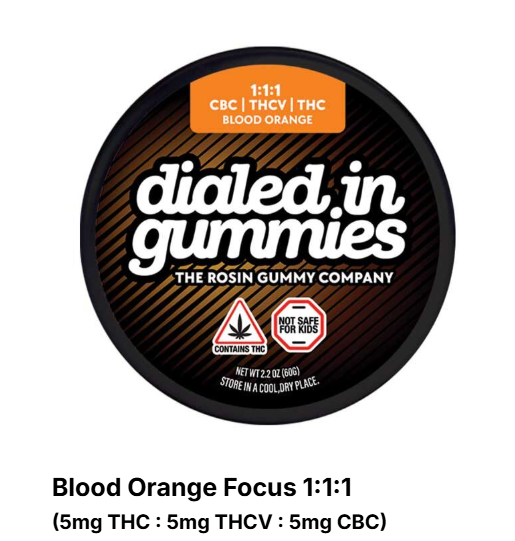Dialed In | Innovation | Rosin Gummies | Focus | Blood Orange | 1:1:1 CBC:THCV:THC | 100mg