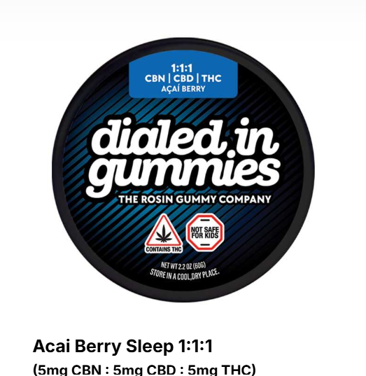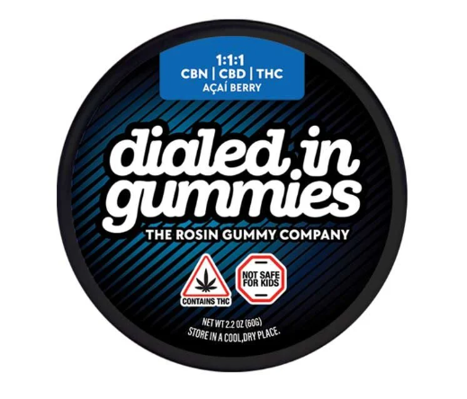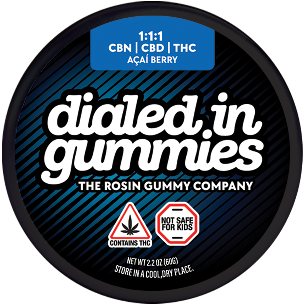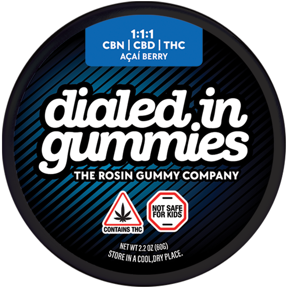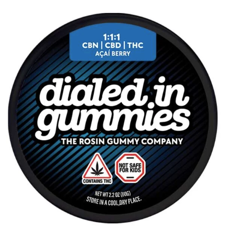 Dialed In Innovation | Acai Berry 1:1:1 CBN:CBD:THC | Rosin Gummies | 100mg