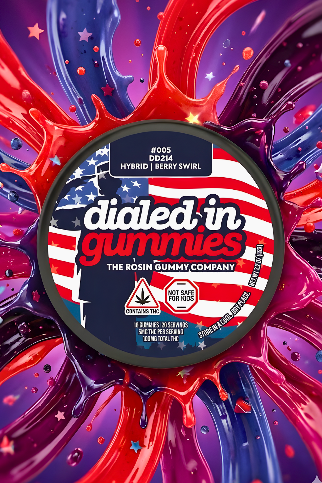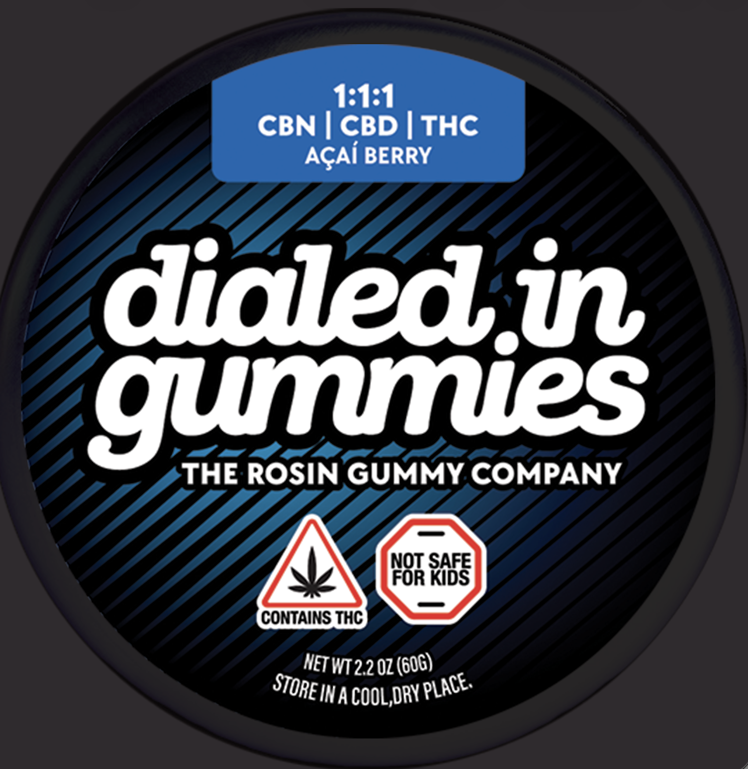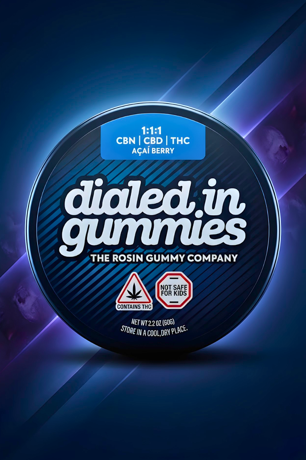 Dialed In Innovation | Acai Berry 1:1:1 CBN:CBD:THC | Rosin Gummies | 100mg