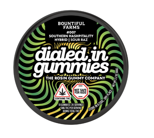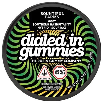 Dialed In | 10mg 10pk Live Rosin Gummies | LTO Sour Raz x Southern Hashpitality