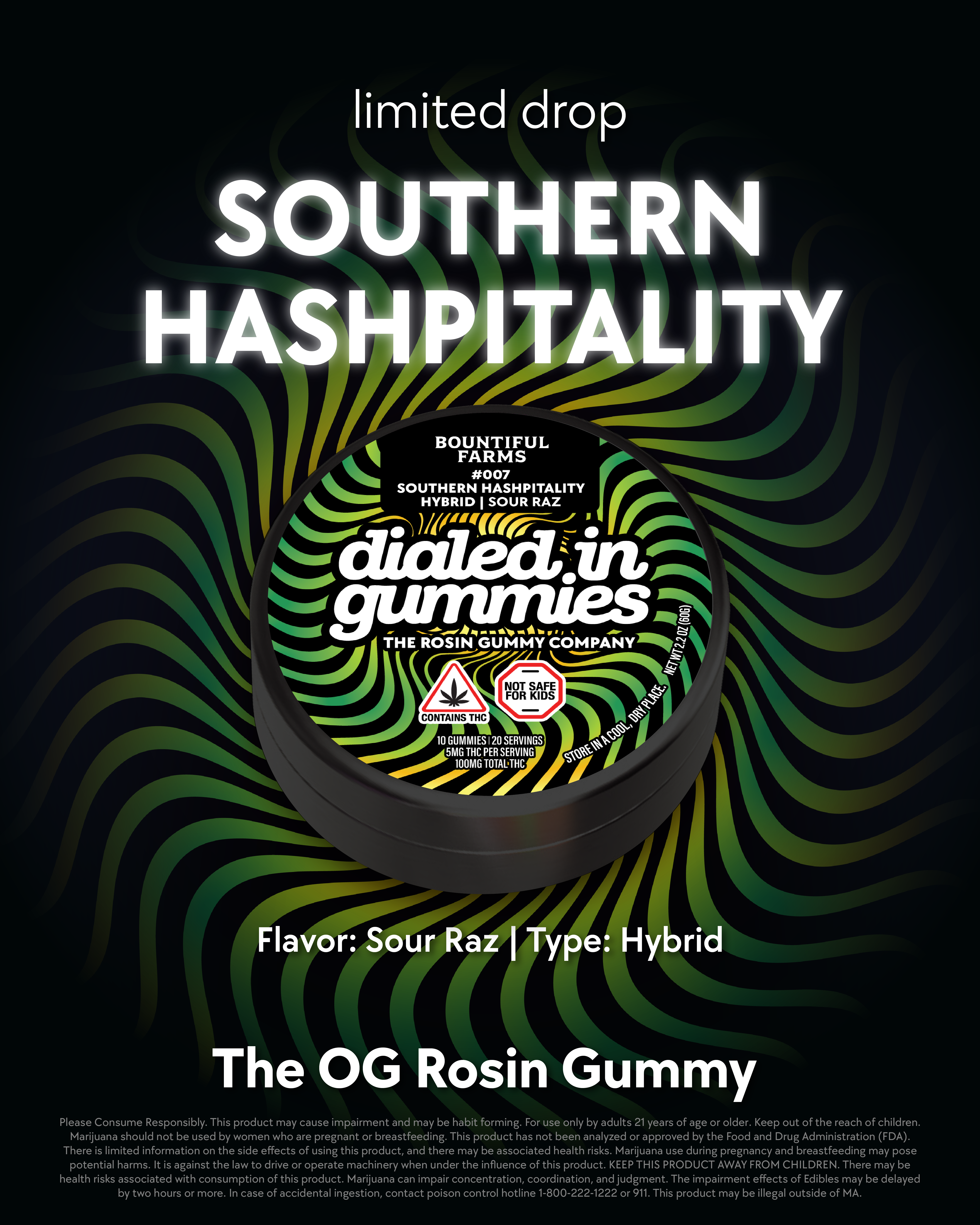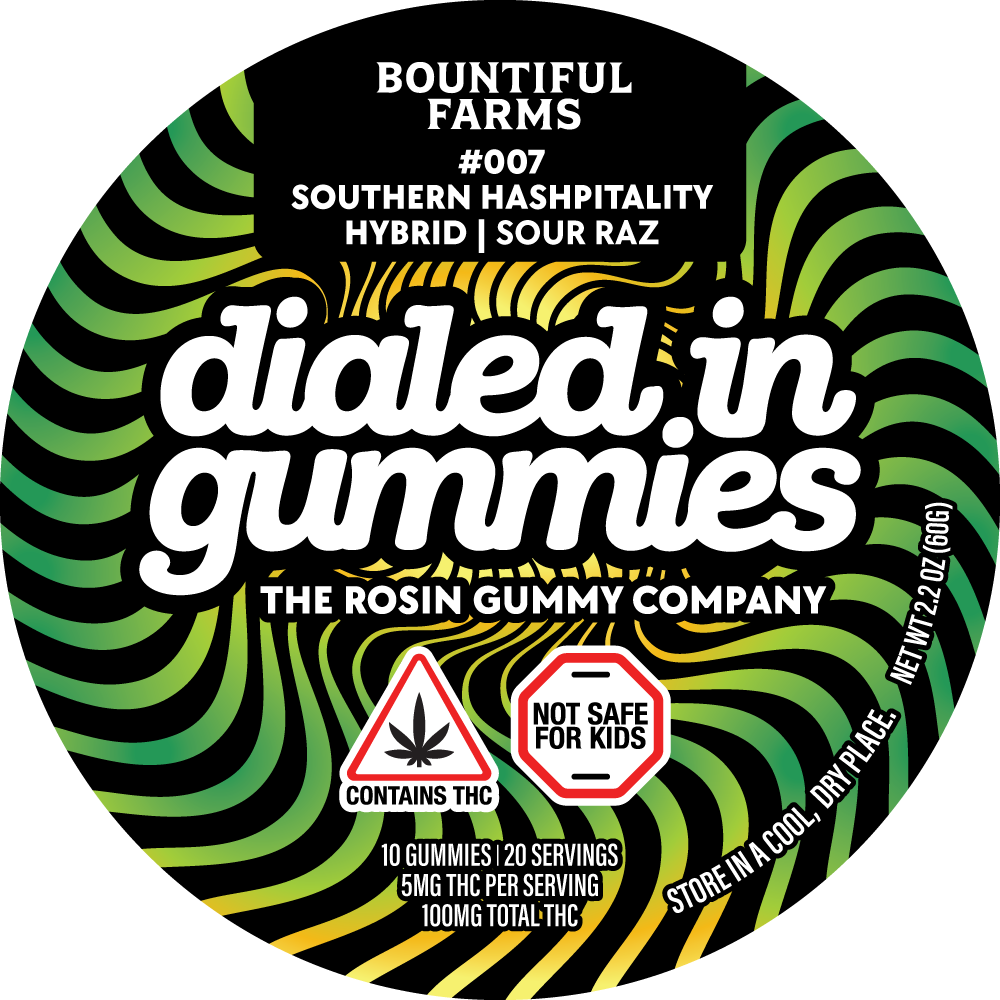 Sour Razz x Southern Hashpitality Rosin Gummies | 20 Servings | Hybrid | LTO Bountiful Farms Collab