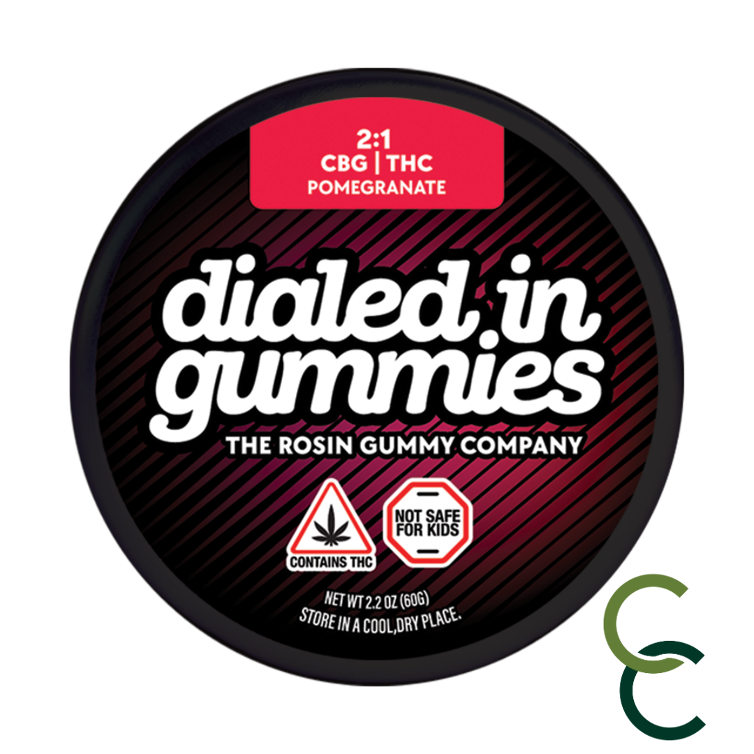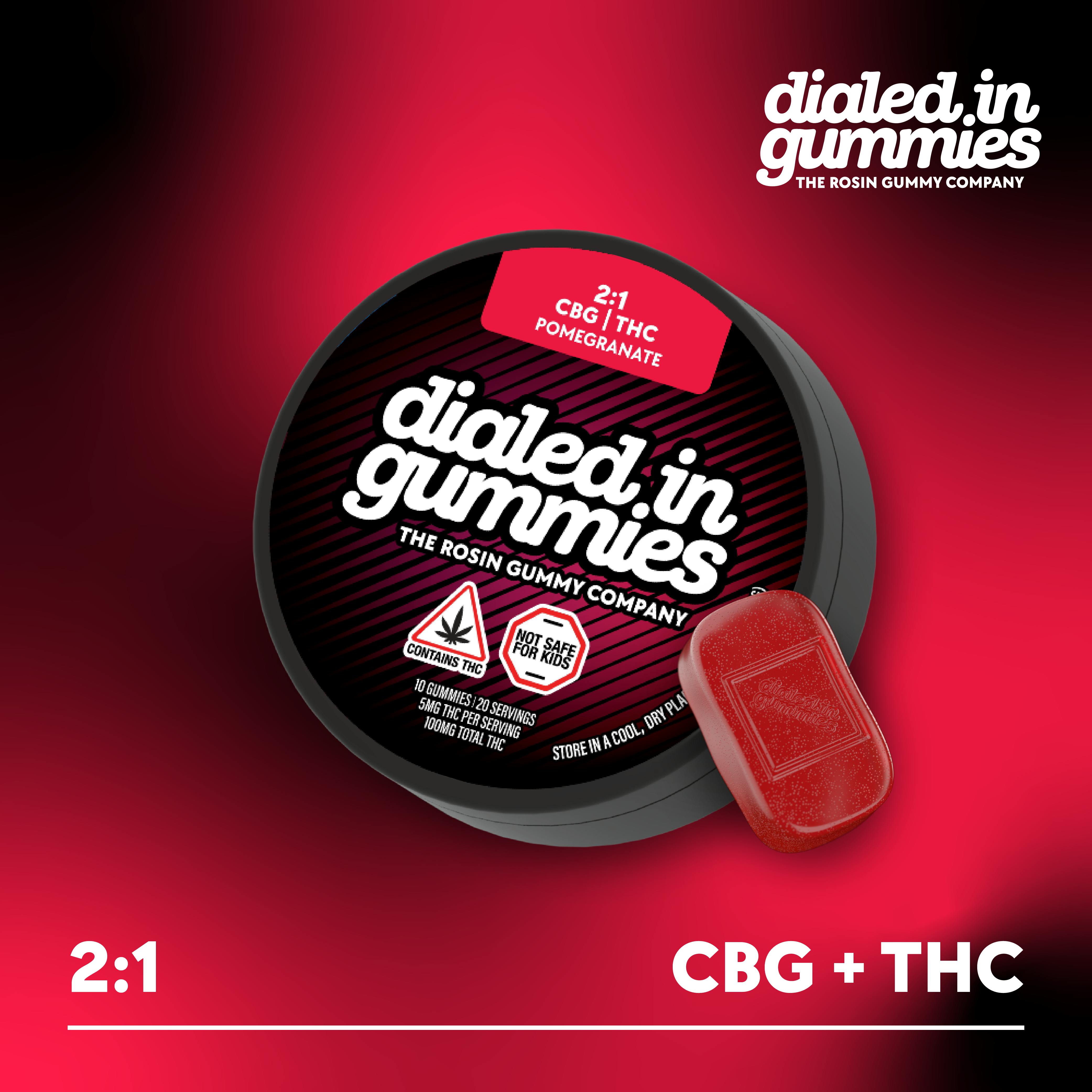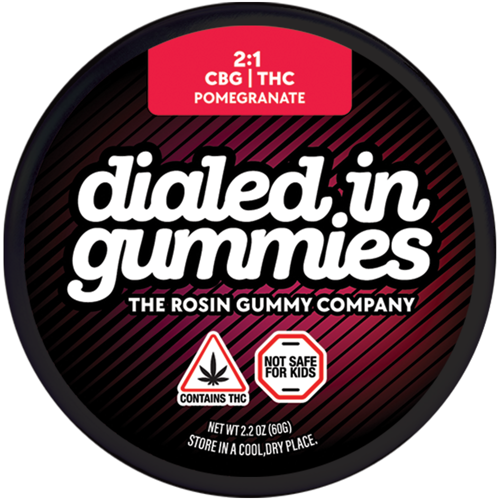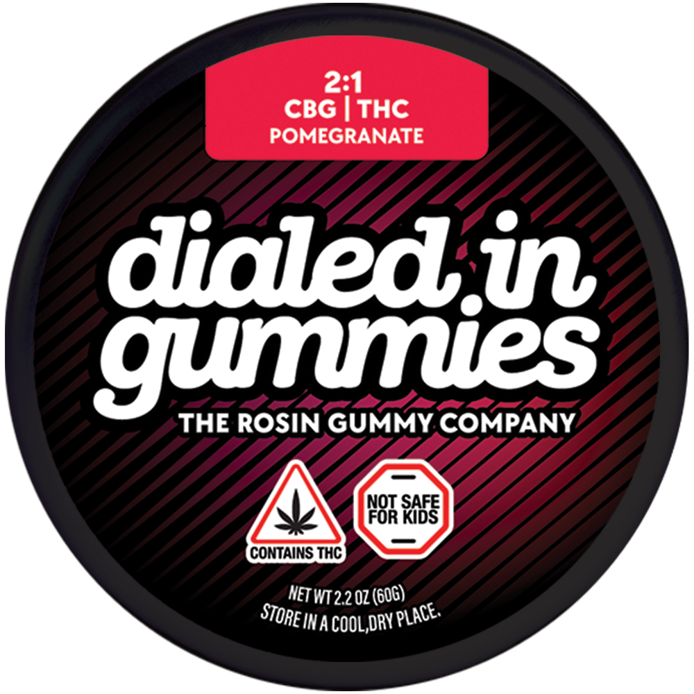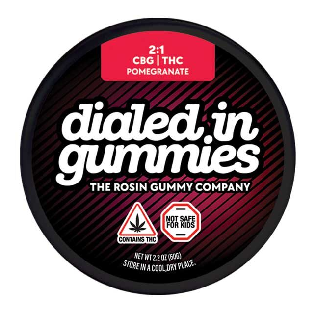 Dialed In | Innovation | Rosin Gummies | Relax | Pomegranate | 2:1 CBG:THC | 100mg 20pk