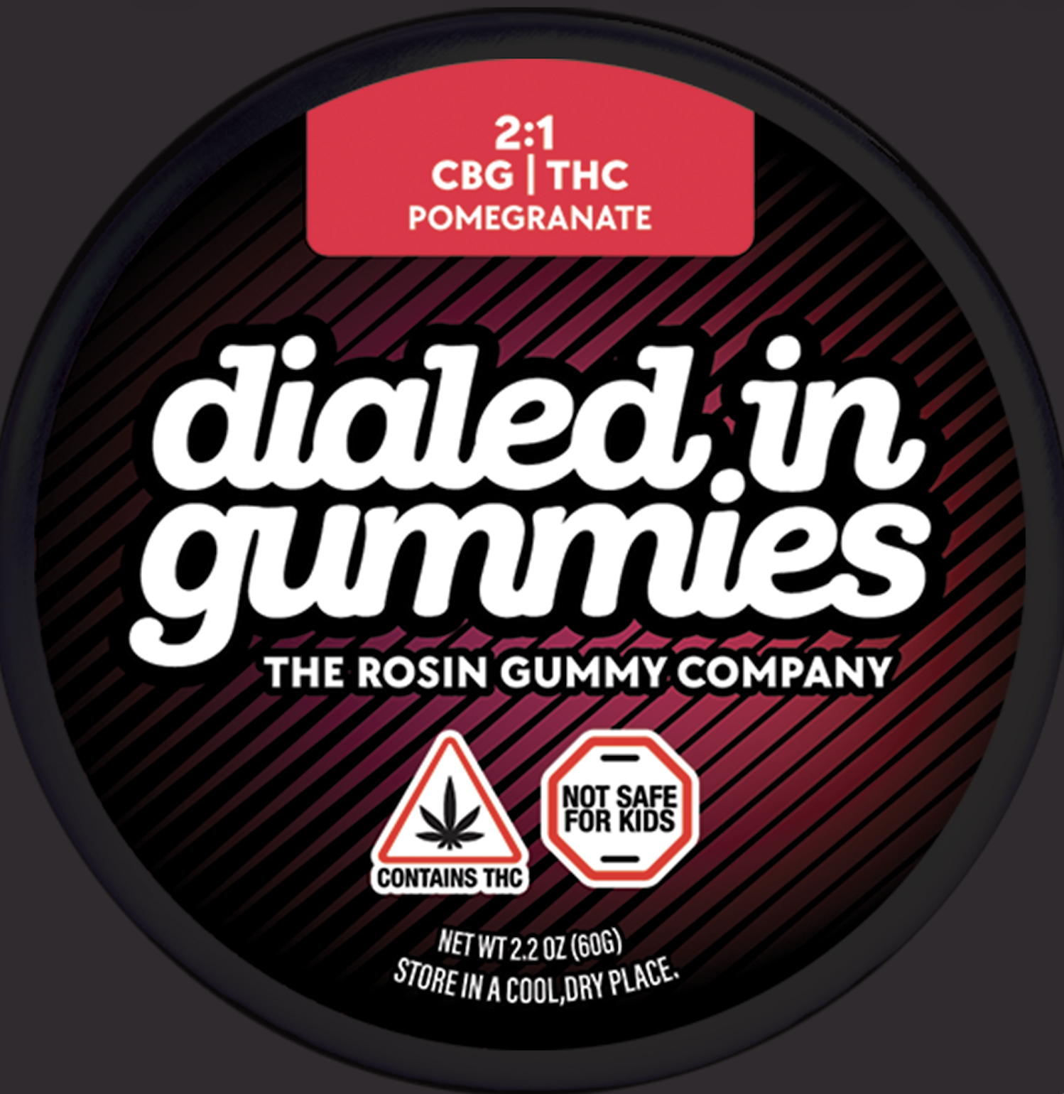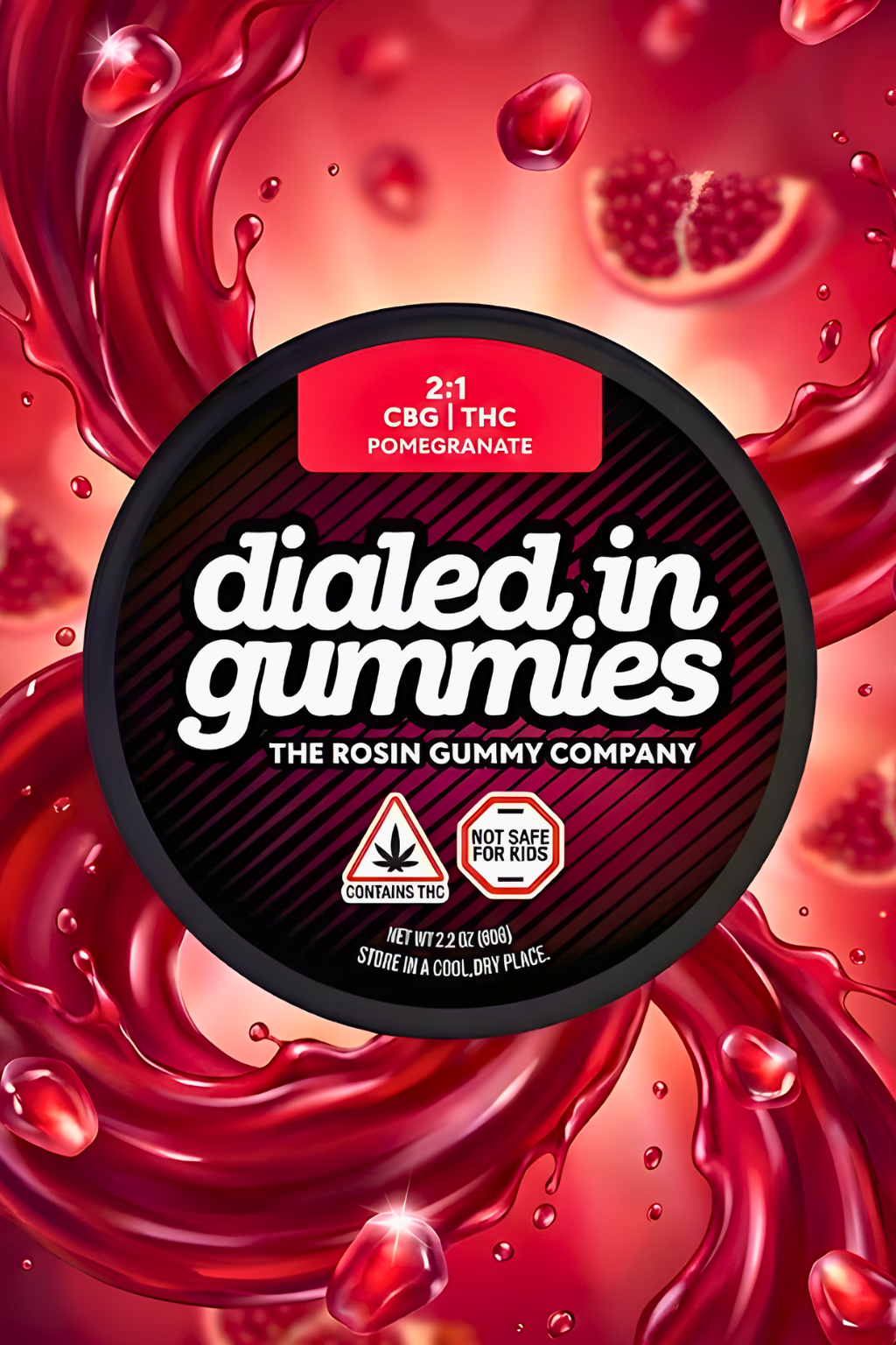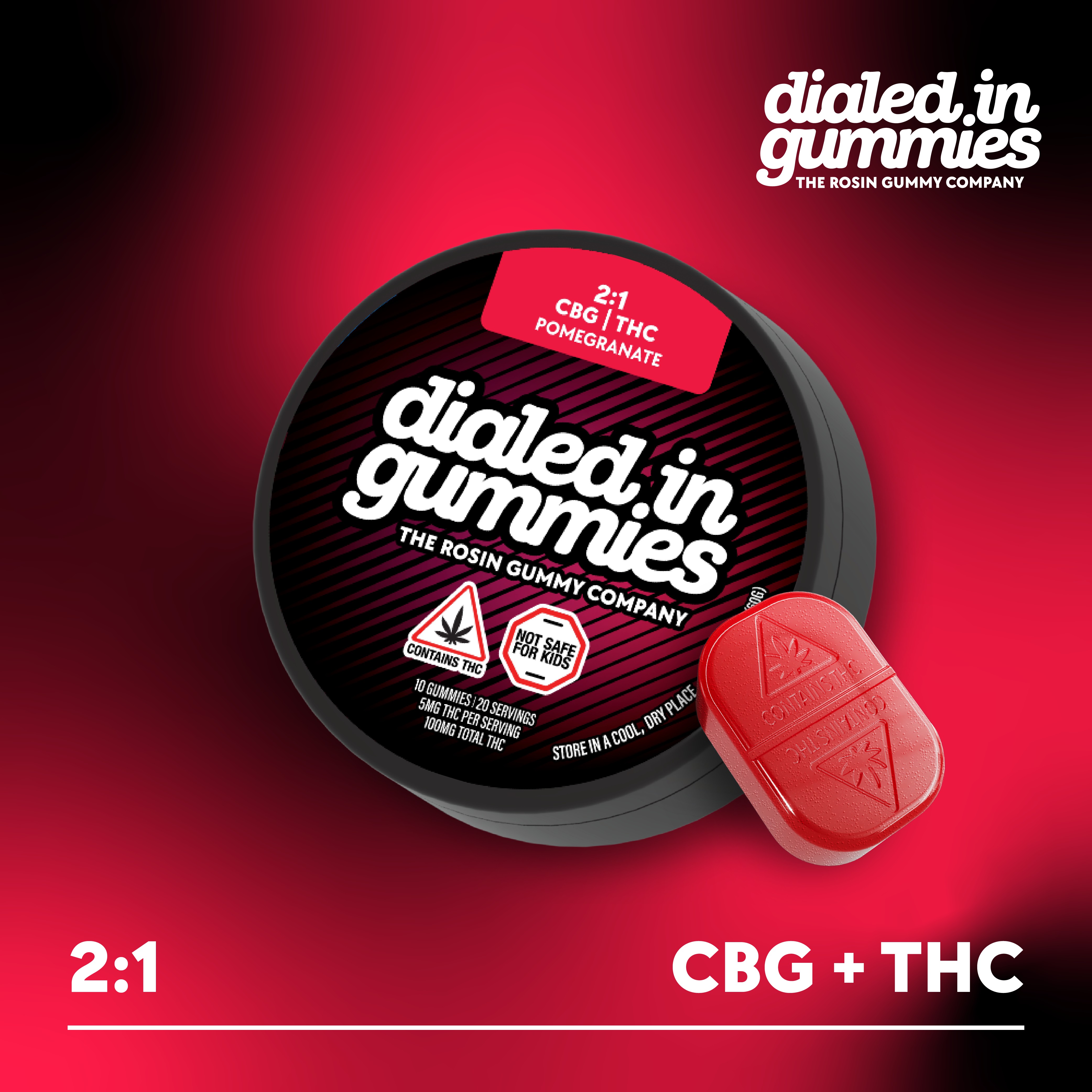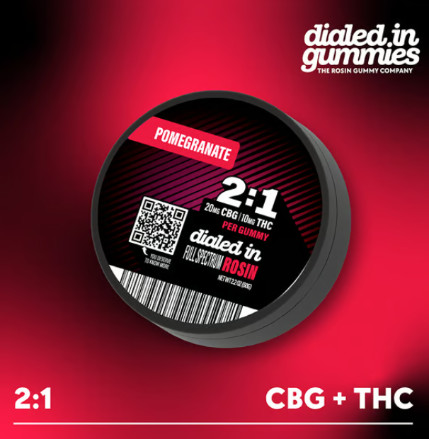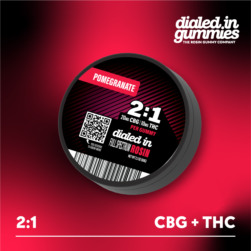 Dialed In | Innovation | Rosin Gummies | Relax | Pomegranate | 2:1 CBG:THC | 100mg 20pk