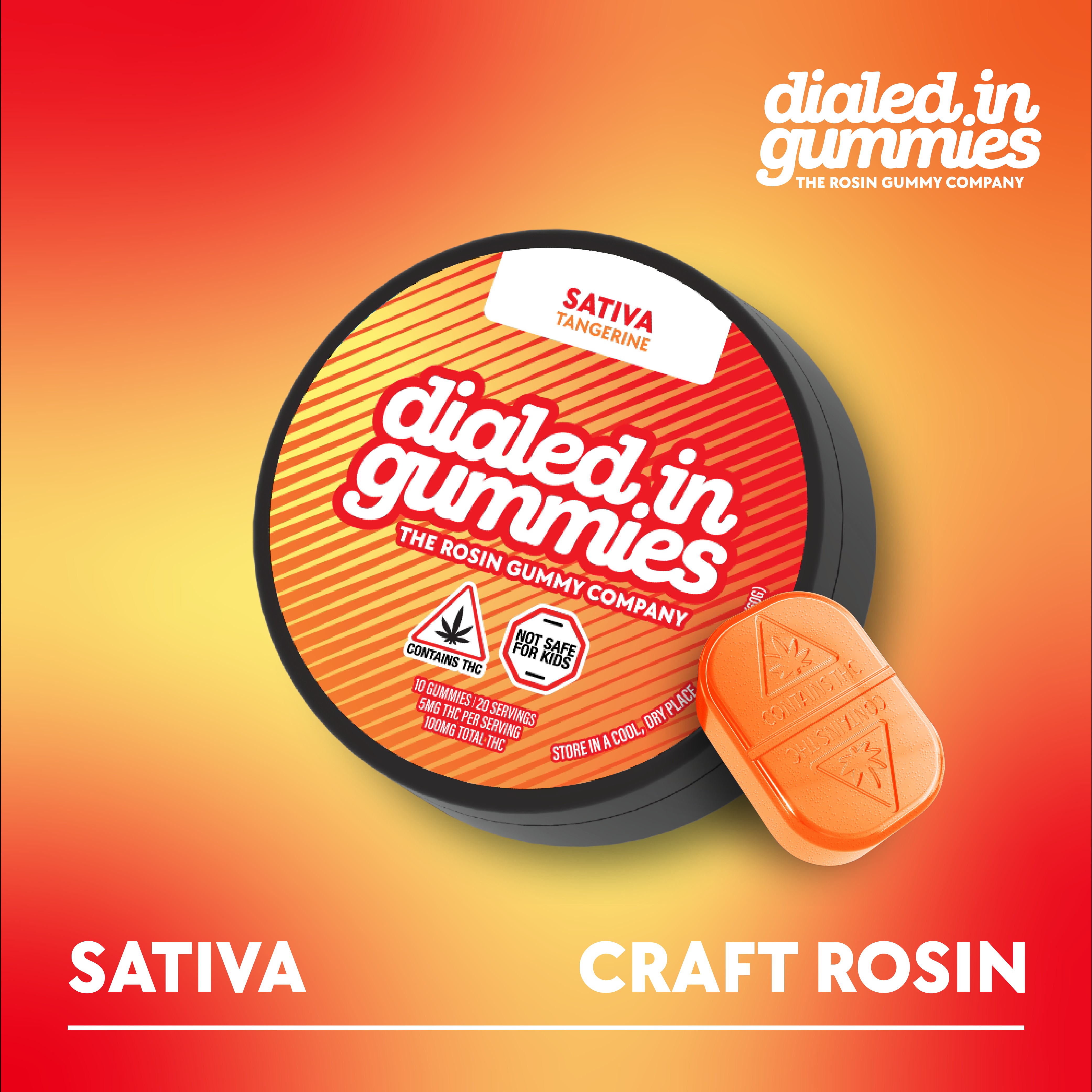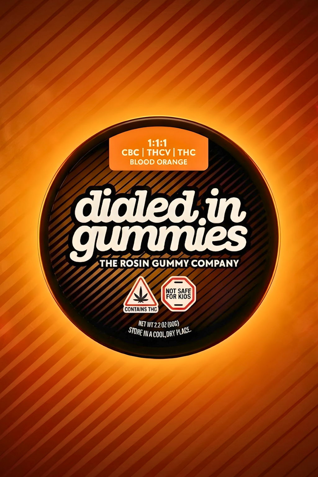 Dialed In | Innovation | Rosin Gummies | Focus | Blood Orange | 1:1:1 CBC:THCV:THC | 100mg 20pk