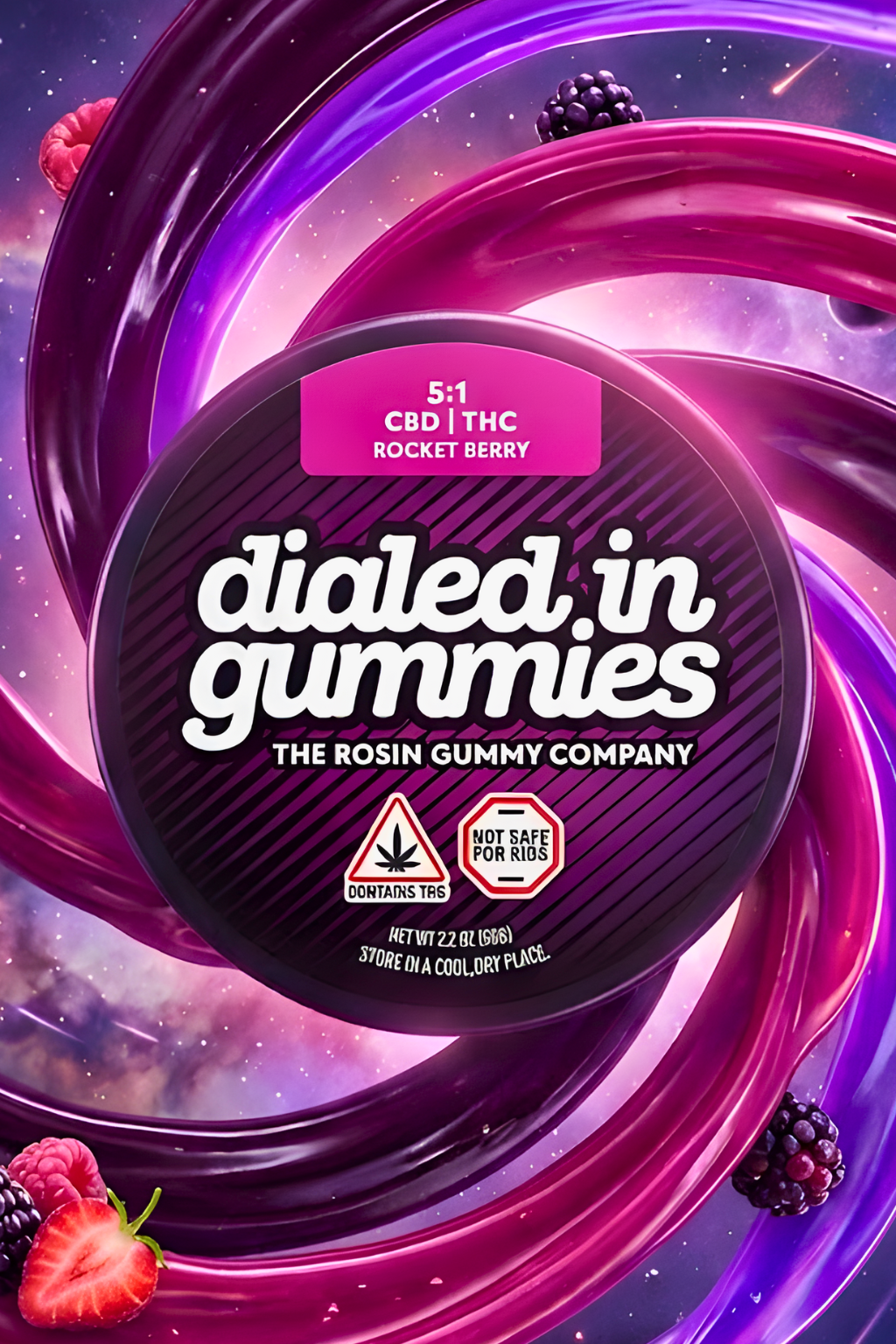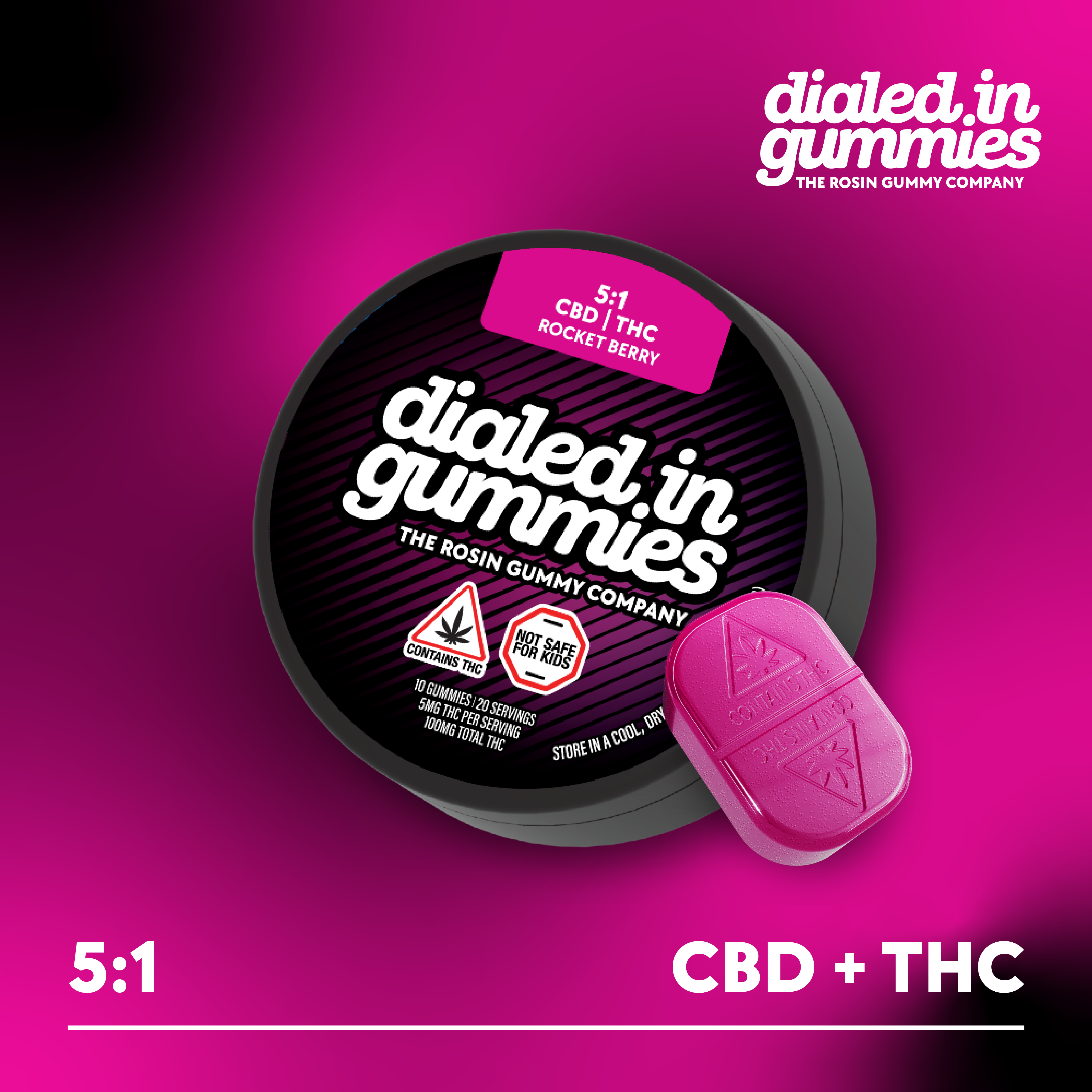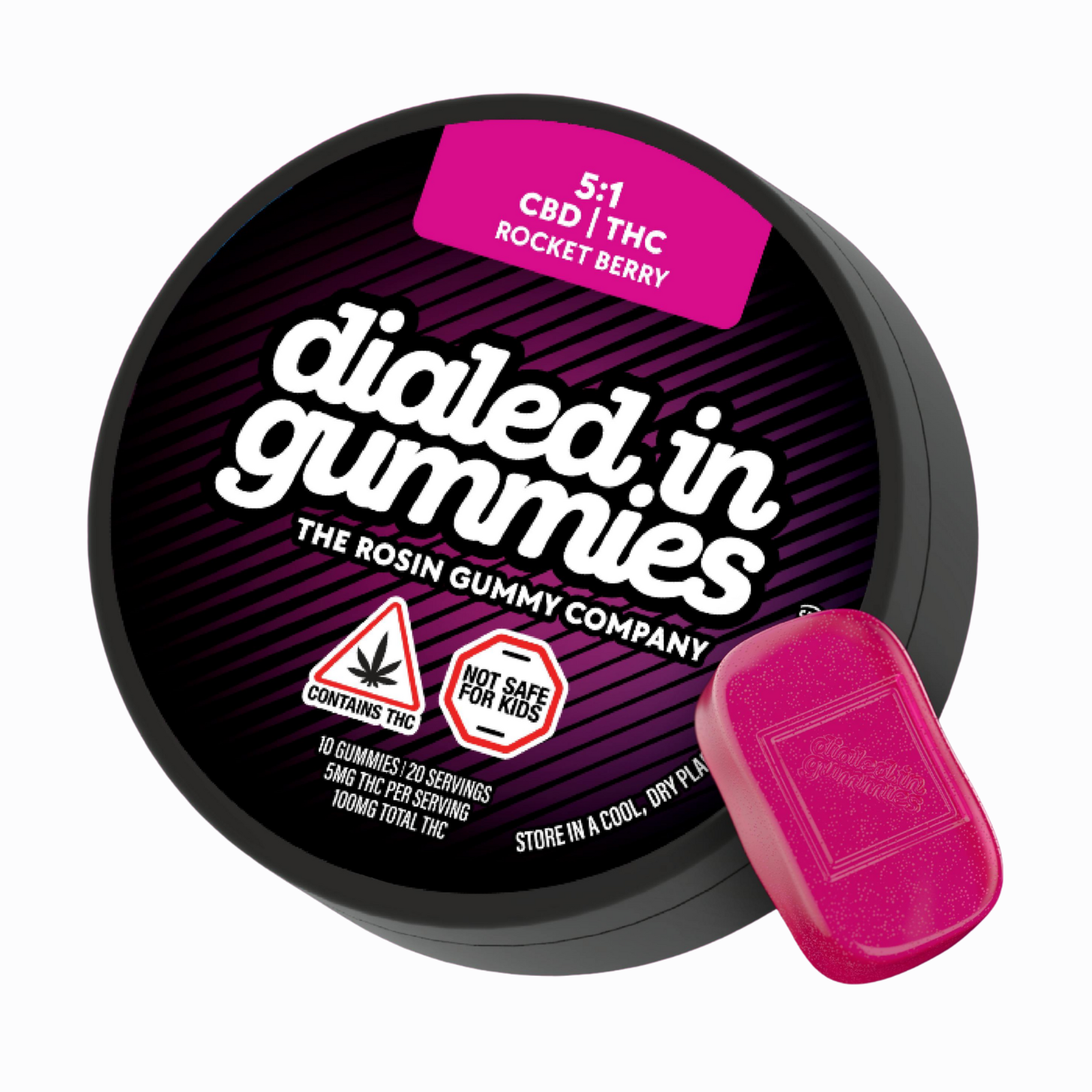 Dialed In | Innovation | Rosin Gummies | Balance | Rocket Berry | 5:1 CBD:THC | 100mg 20pk