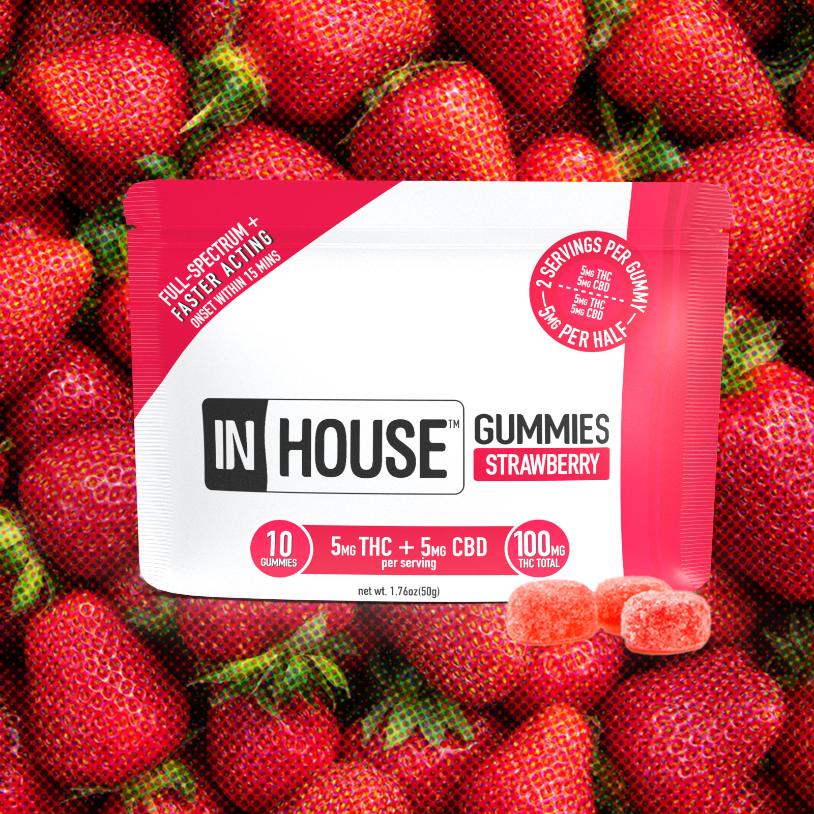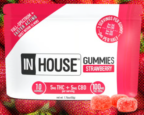 2/$30+ | InHouse Fast Acting Gummies | 10pk | 1:1 | 100mg | Strawberry