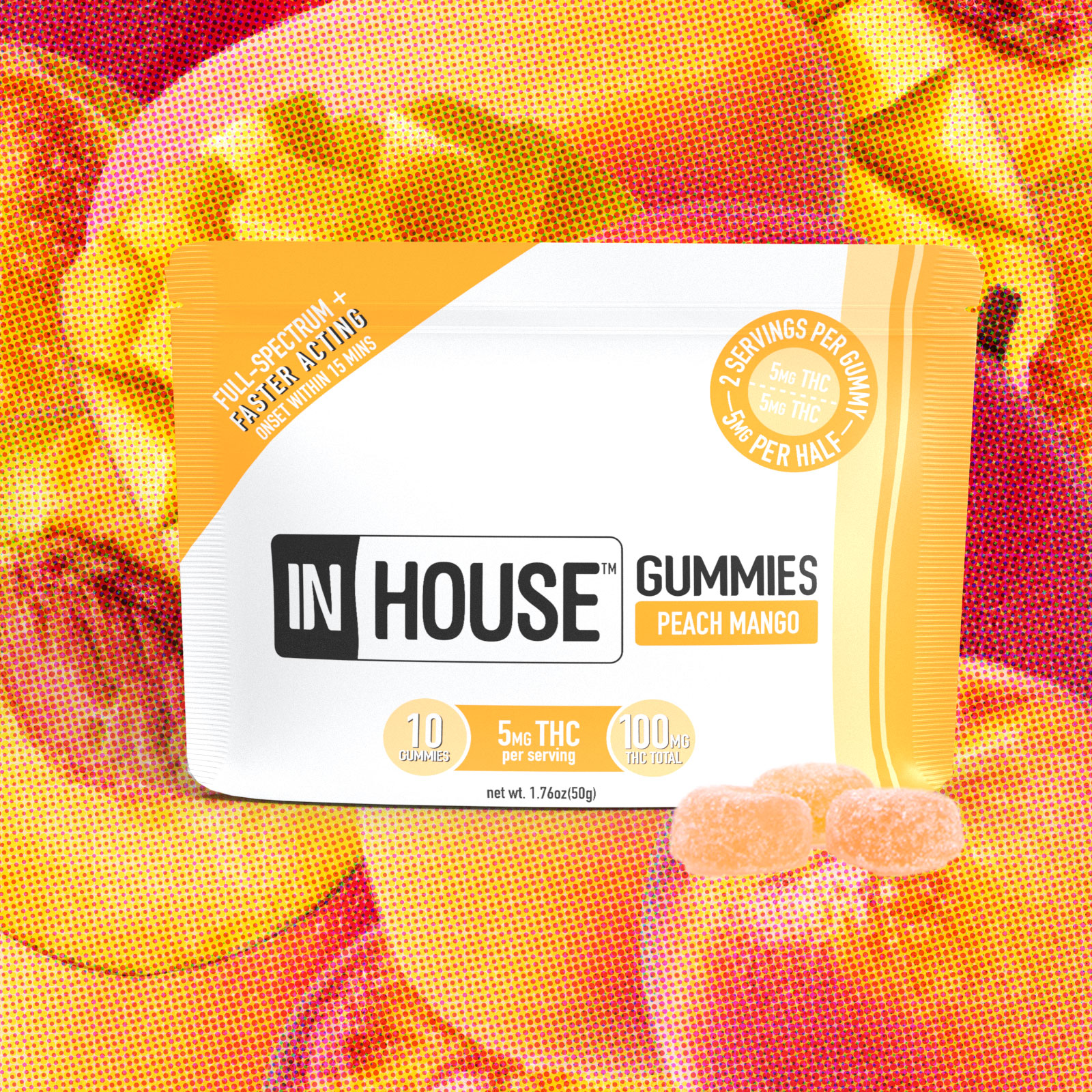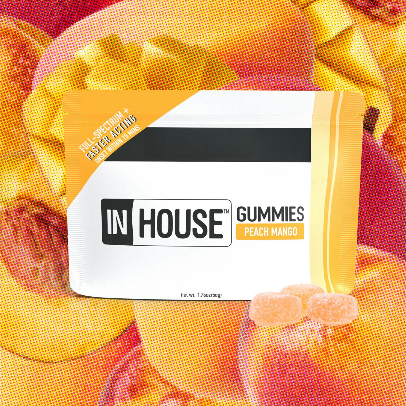 2/$30+ | InHouse Fast Acting Gummies | Hybrid | 10pk | Peach Mango