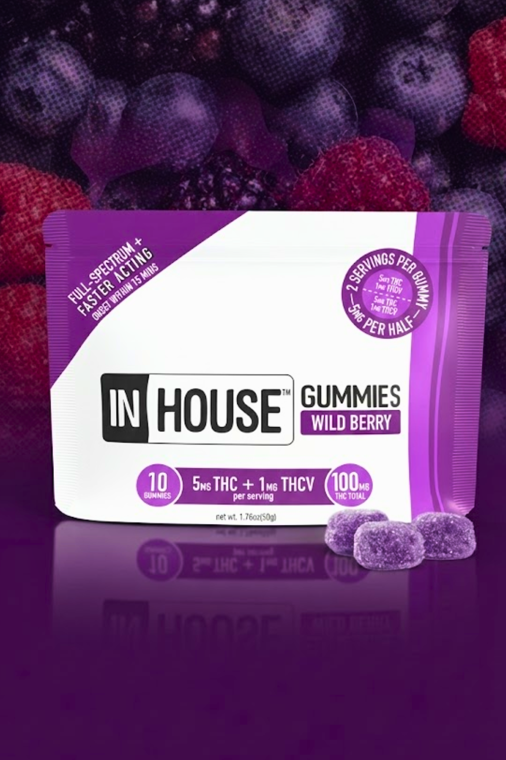 2/$30+ | InHouse Gummies | Fast-Acting | 5mg:1mg THC/THCV | Wild Berry | 10 Pack