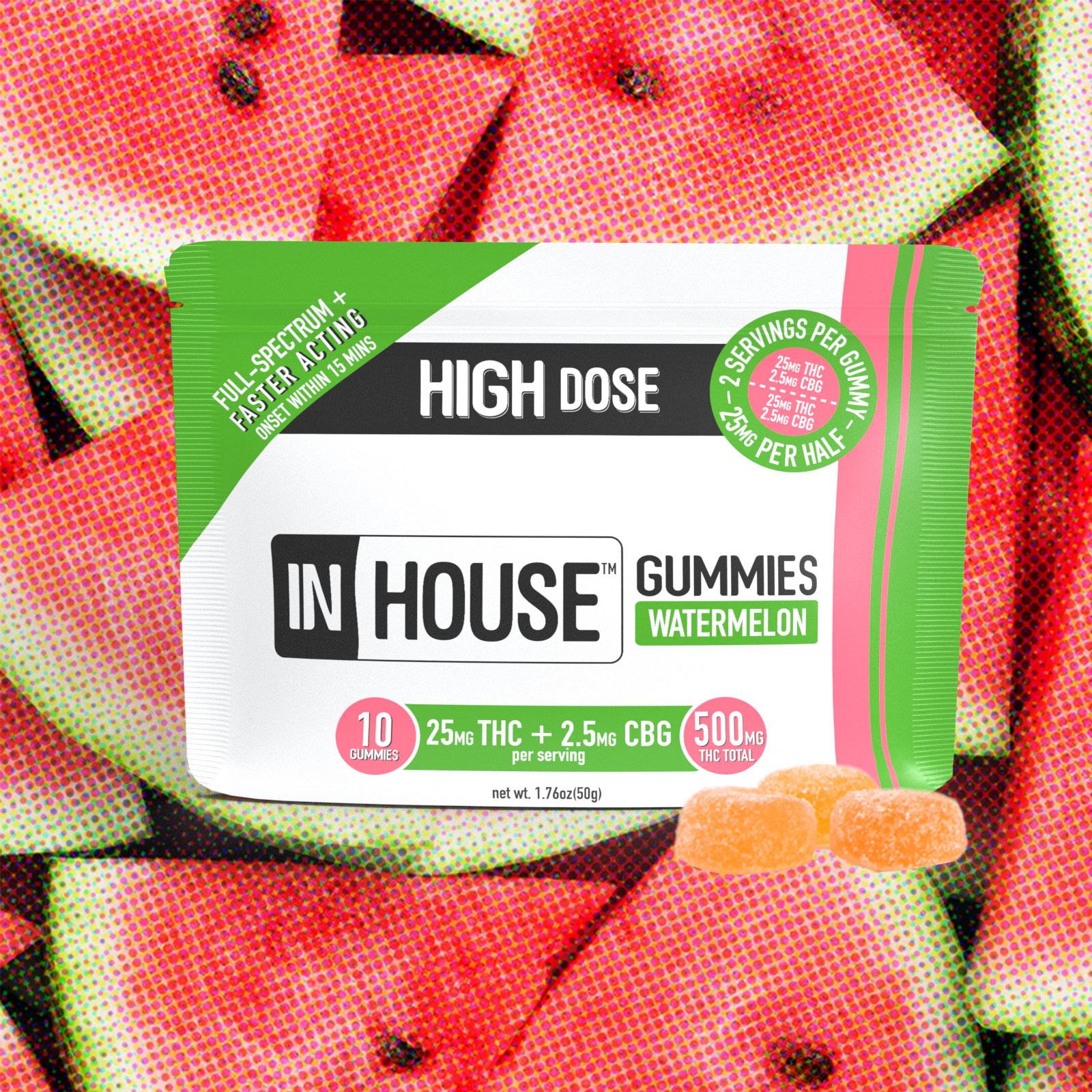 Watermelon 1:1 THC:CBG Fast Acting (10pk) | Gummies | In House | 100mg