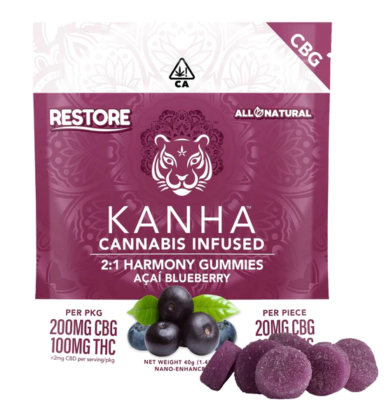 2:1 (CBG:THC) Harmony Gummies Acai Blueberry (100mg)
