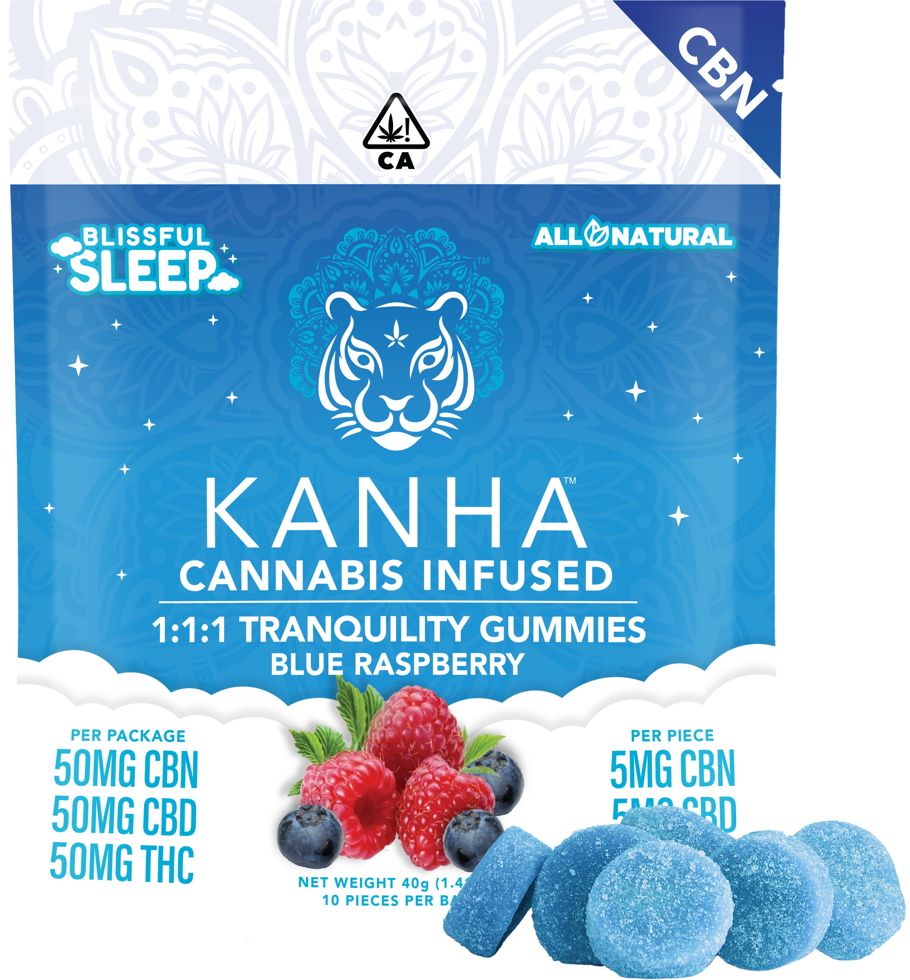 Tranquility Sleep Blue Raspberry - 1:1:1 CBN:CBD:THC Gummies 10pk