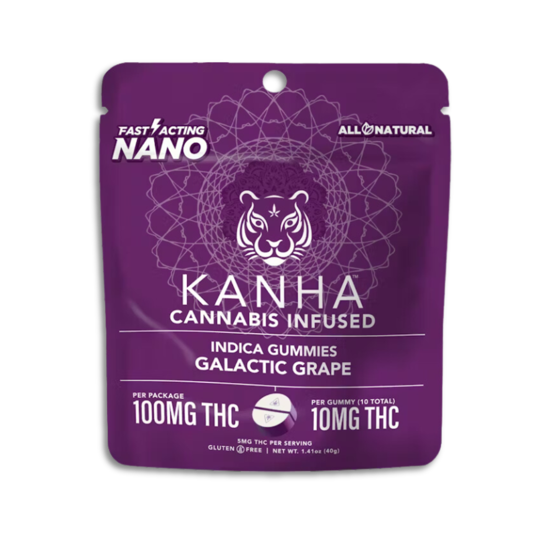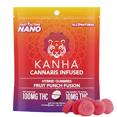 KANHA has built a broad multi-state presence. Available at 473 dispensaries across 5 states. A few products consistently show up across the most locations. Blueberry Lemon Drop | Hybrid | 4-pack Belts | 100mg (185 stores), Galactic Grape - Indica [10pk] (100mg) (165 stores), and Cran-Pomegranate Punch Sativa Nano Gummies [20pk] (100mg) (164 stores). The catalog skews heavily toward edibles. Offerings include 1806 edibles, 94 concentrates, 49 not specified, and 3 accessories. Pricing lands in the mid-range range for cannabis products. Products run from $0.72 to $60.39.