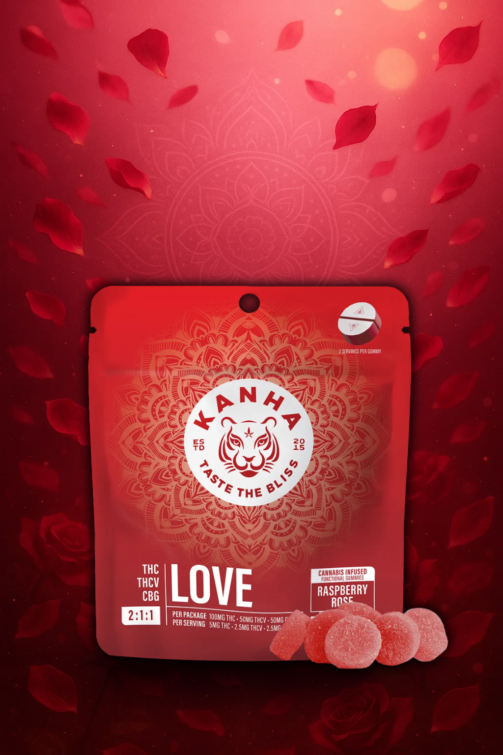 LOVE 2:1:1 Raspberry Rose Gummies - 10pk - 100mg - THC:THCV:CBG