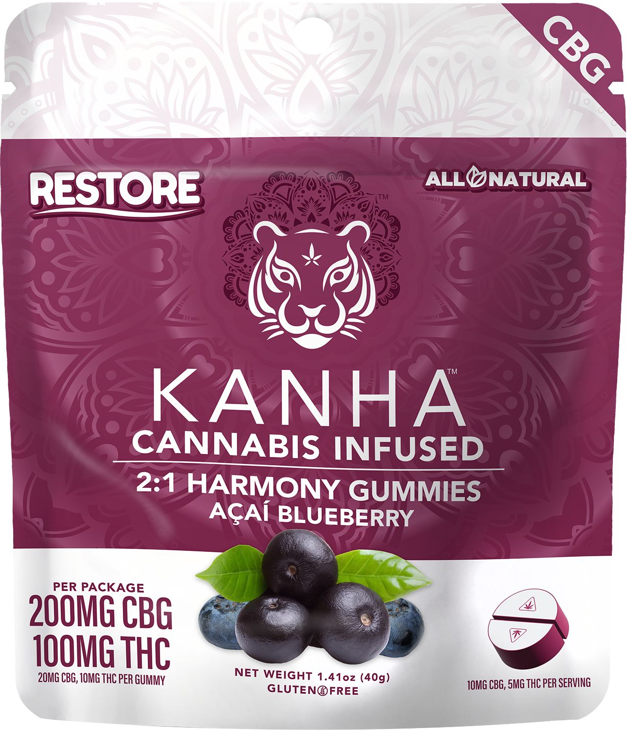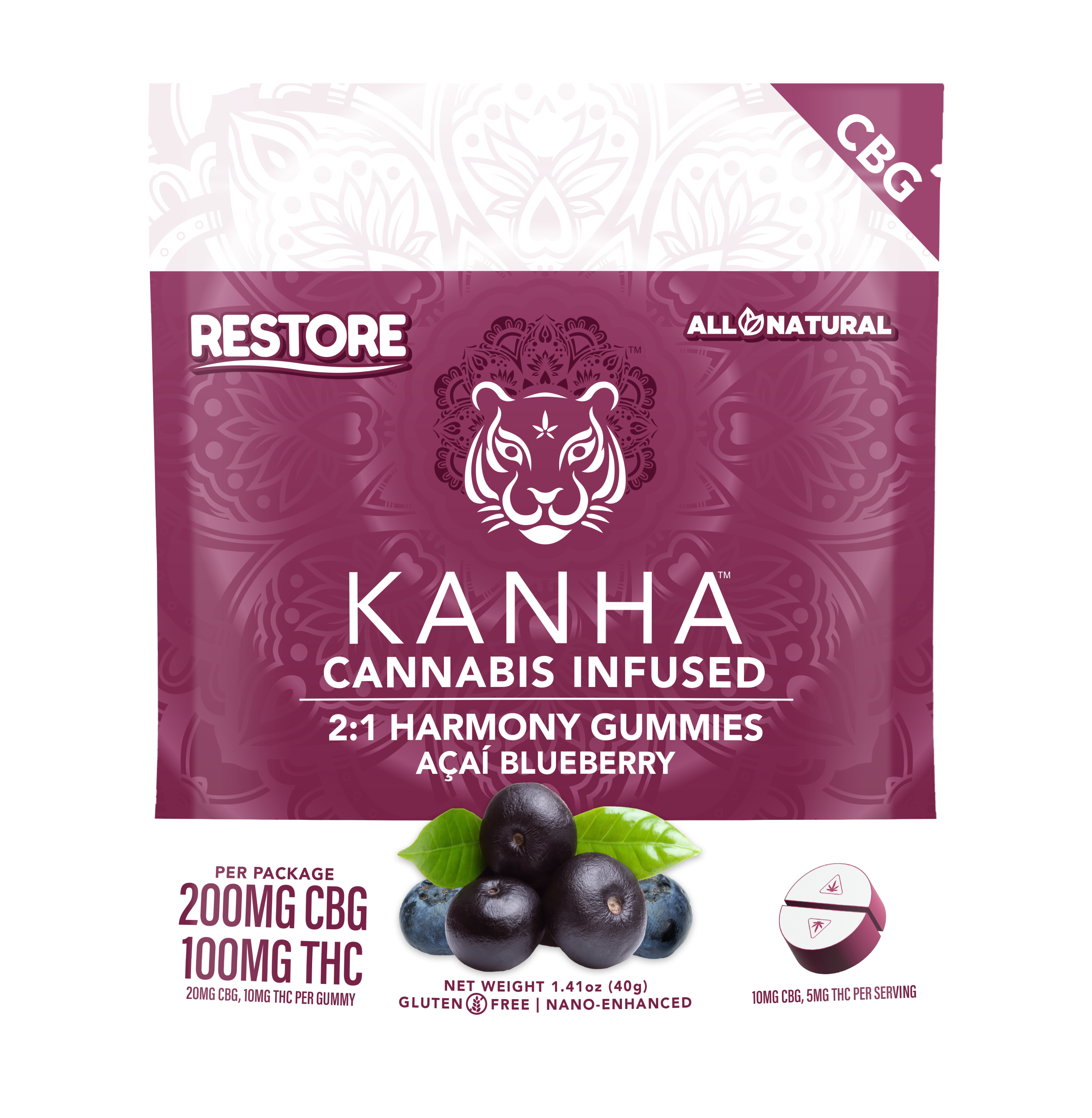 2:1 (CBG:THC) Acai Blueberry Gummy | Harmony | 5mg | 10pk | 20serv