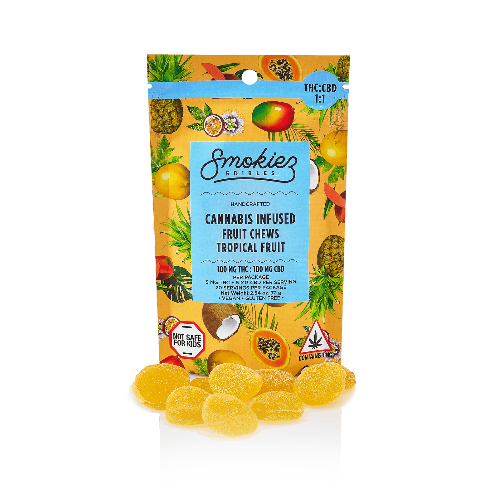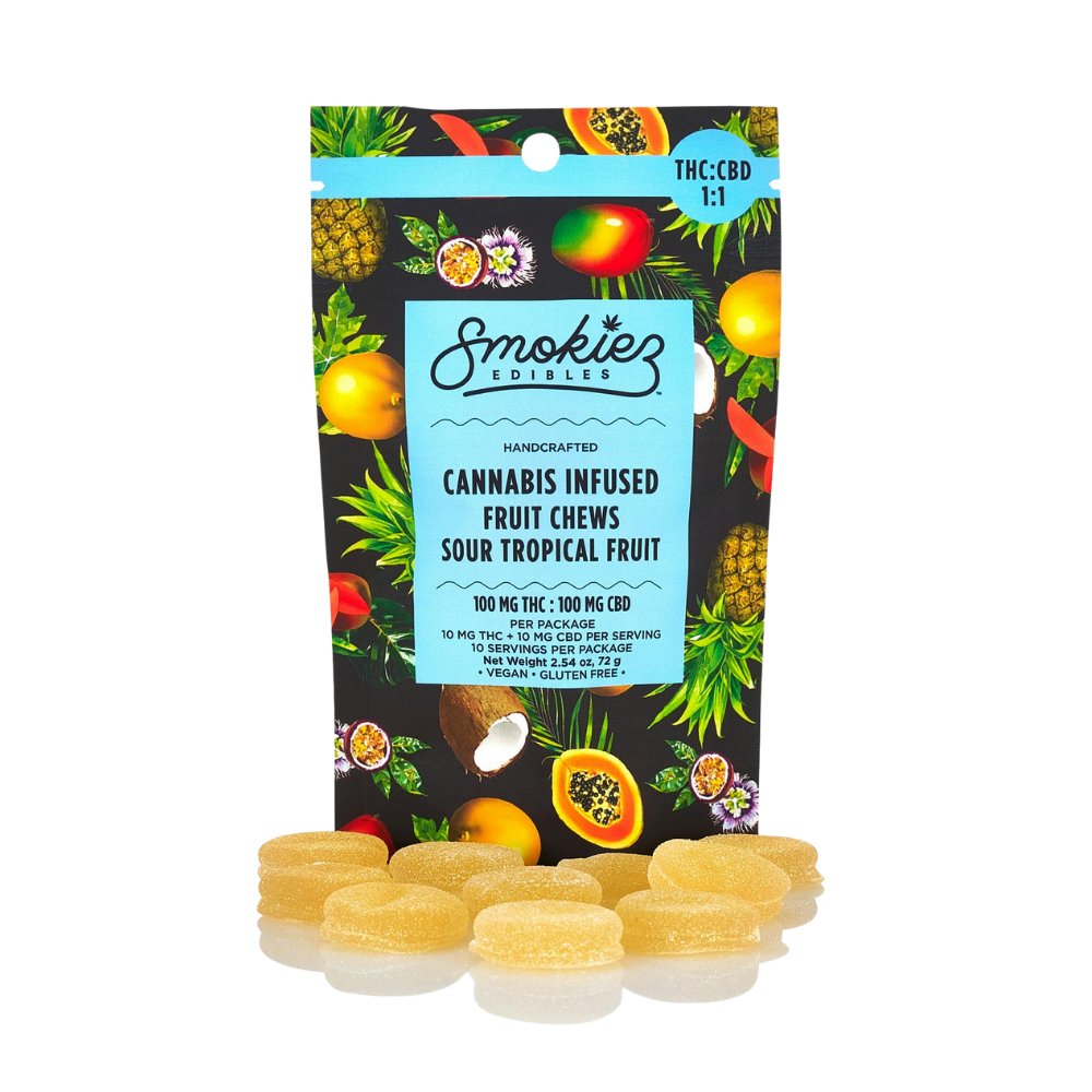 SOUR Tropical Fruit Chews | 1:1 | 100mg | Smokiez