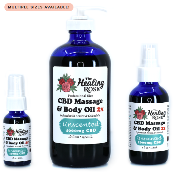 CBD Massage & Body Oil | Healing Rose | Lemon Ginger with Menthol | 2:1 CBD:CBG | 3X | 1500mg | 4oz