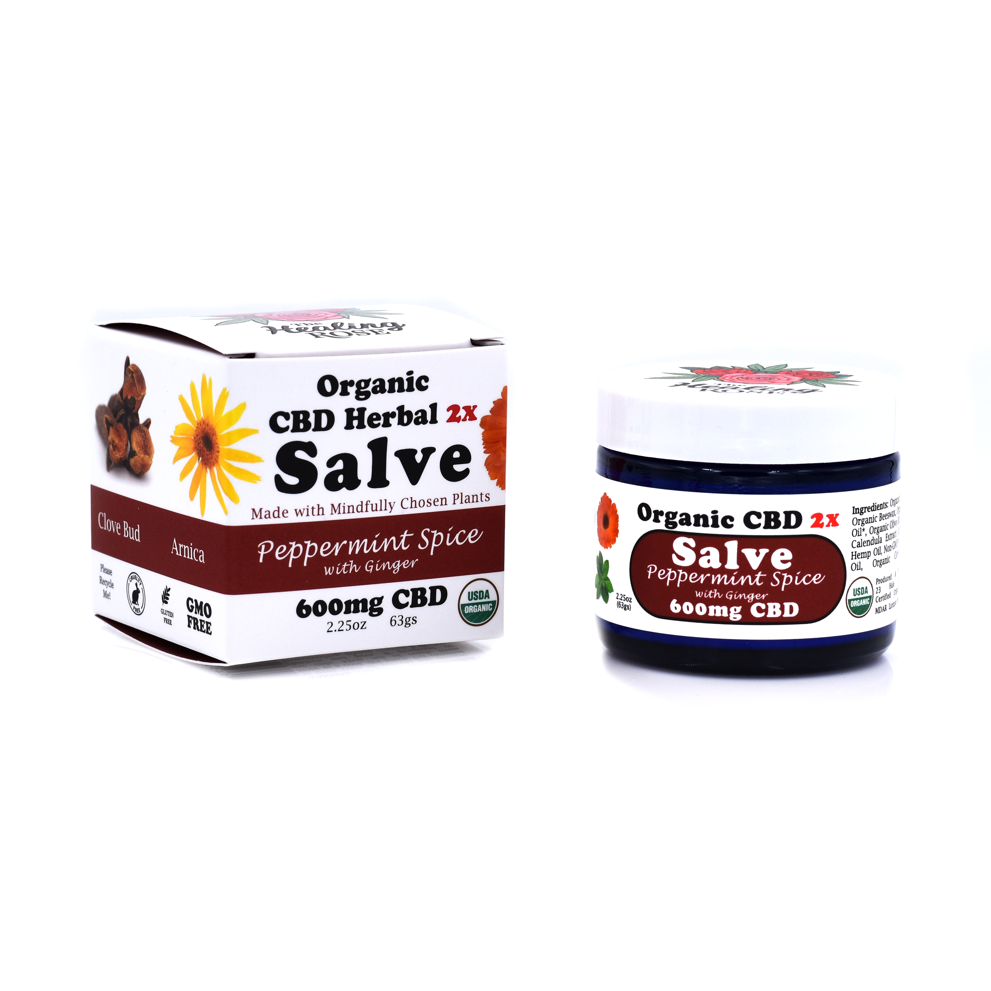 CBD Salve | Healing Rose | Vanilla Mint | 1:1:1 CBD : CBC : CBG | 2400mg | 2.15oz