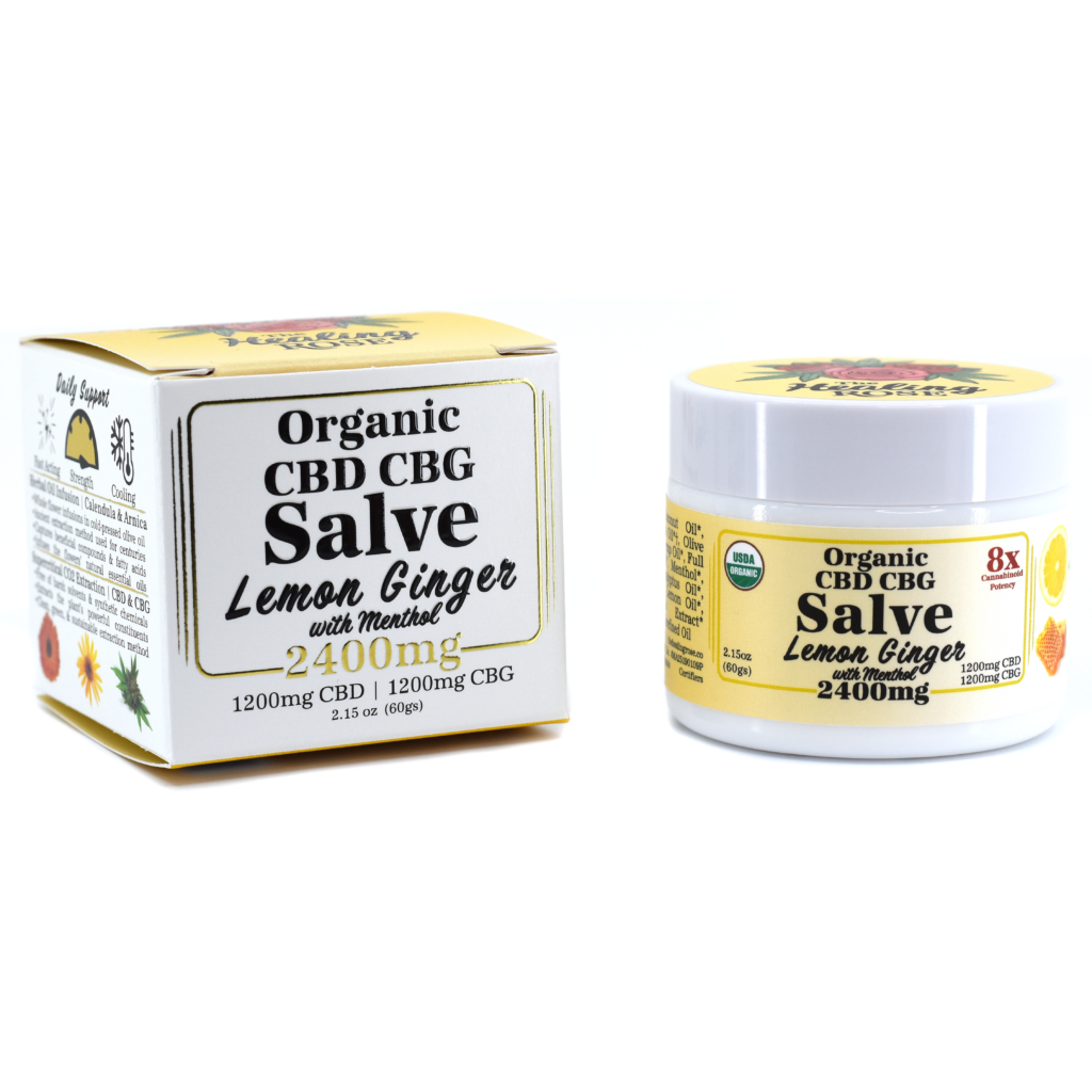 CBD Salve | Healing Rose | Lemon Ginger with Menthol | 1:1 CBD : CBG | 2400mg | 2.15oz