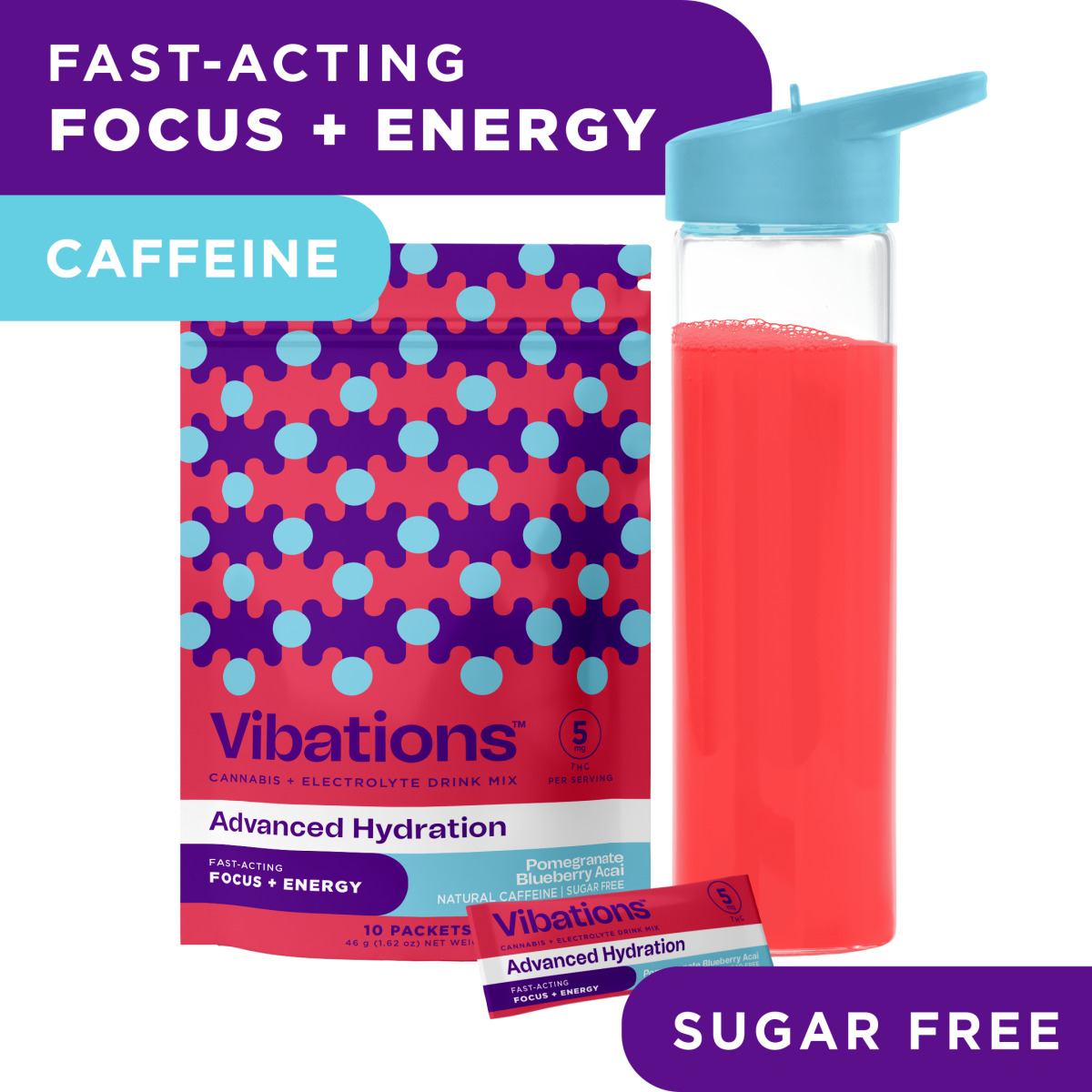 Pomegranate Blueberry Acai Energizing Cannabis Drink Mix 10-pack | 50mg