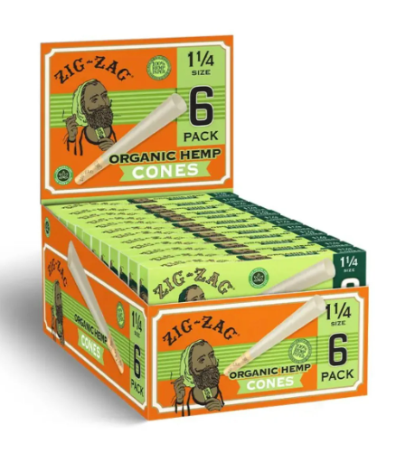 Organic Hemp Cones | 1 1/4 Size | 6 Pack | Zig-Zag