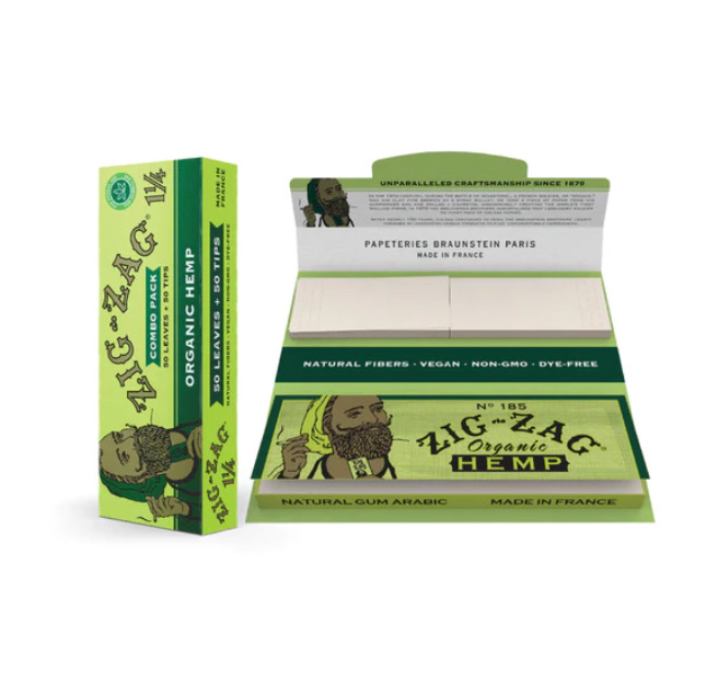 1 1/4" Organic Hemp Combo Pack | 50 Papers & Tips | Zig-Zag